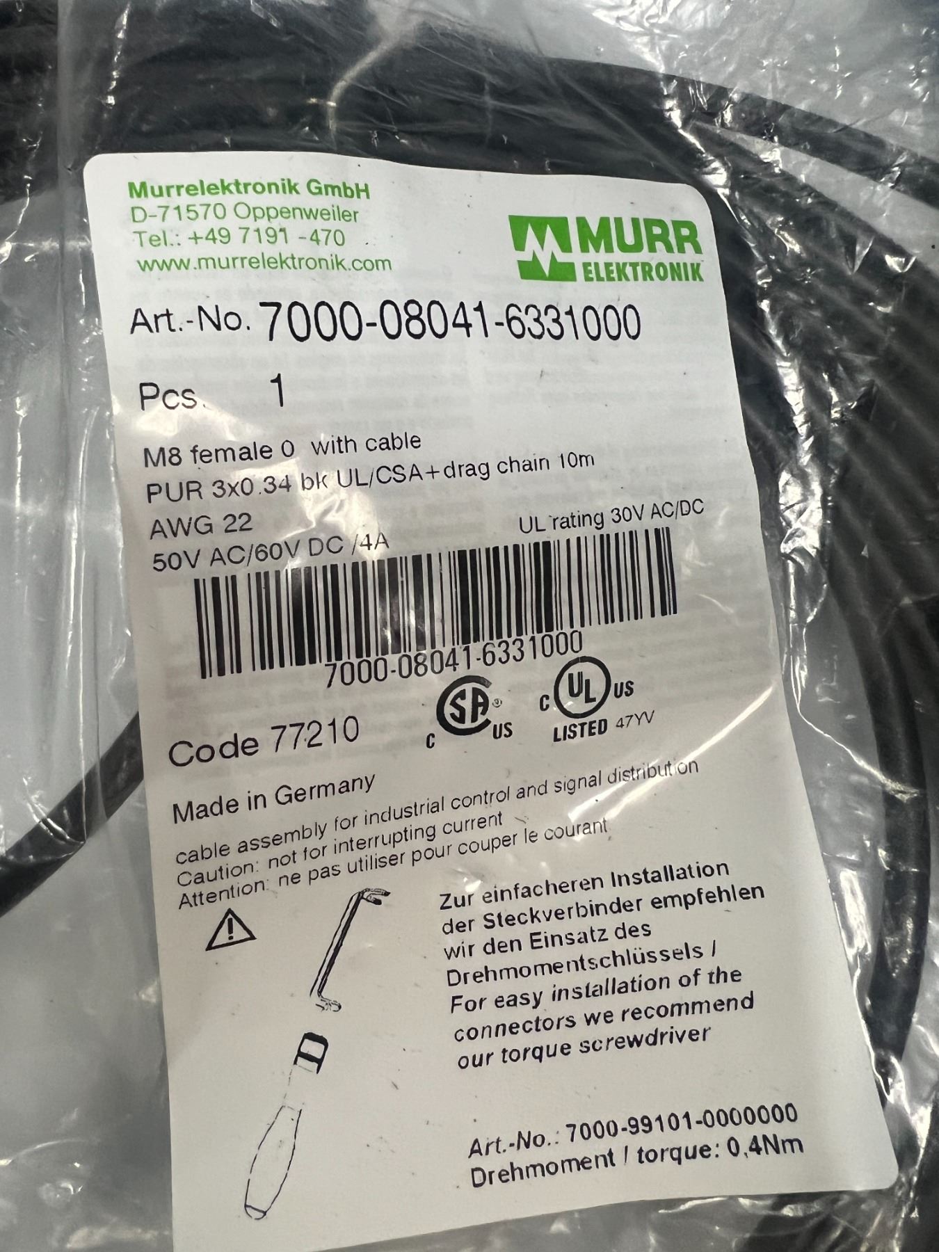 Lot of Murr Elektronik GmbH Cables #7000-08041-6331000