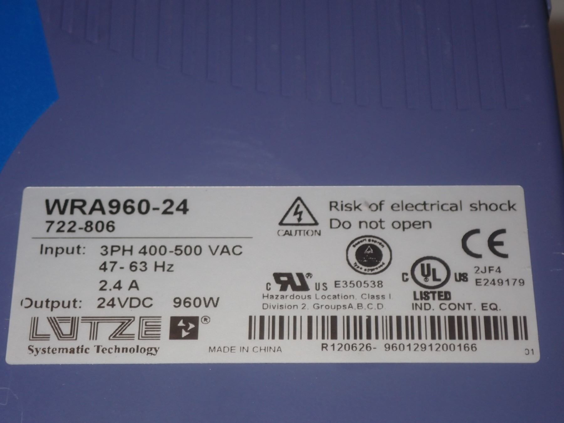 Lutze #WRA960-24 / 722-806 Power Supply