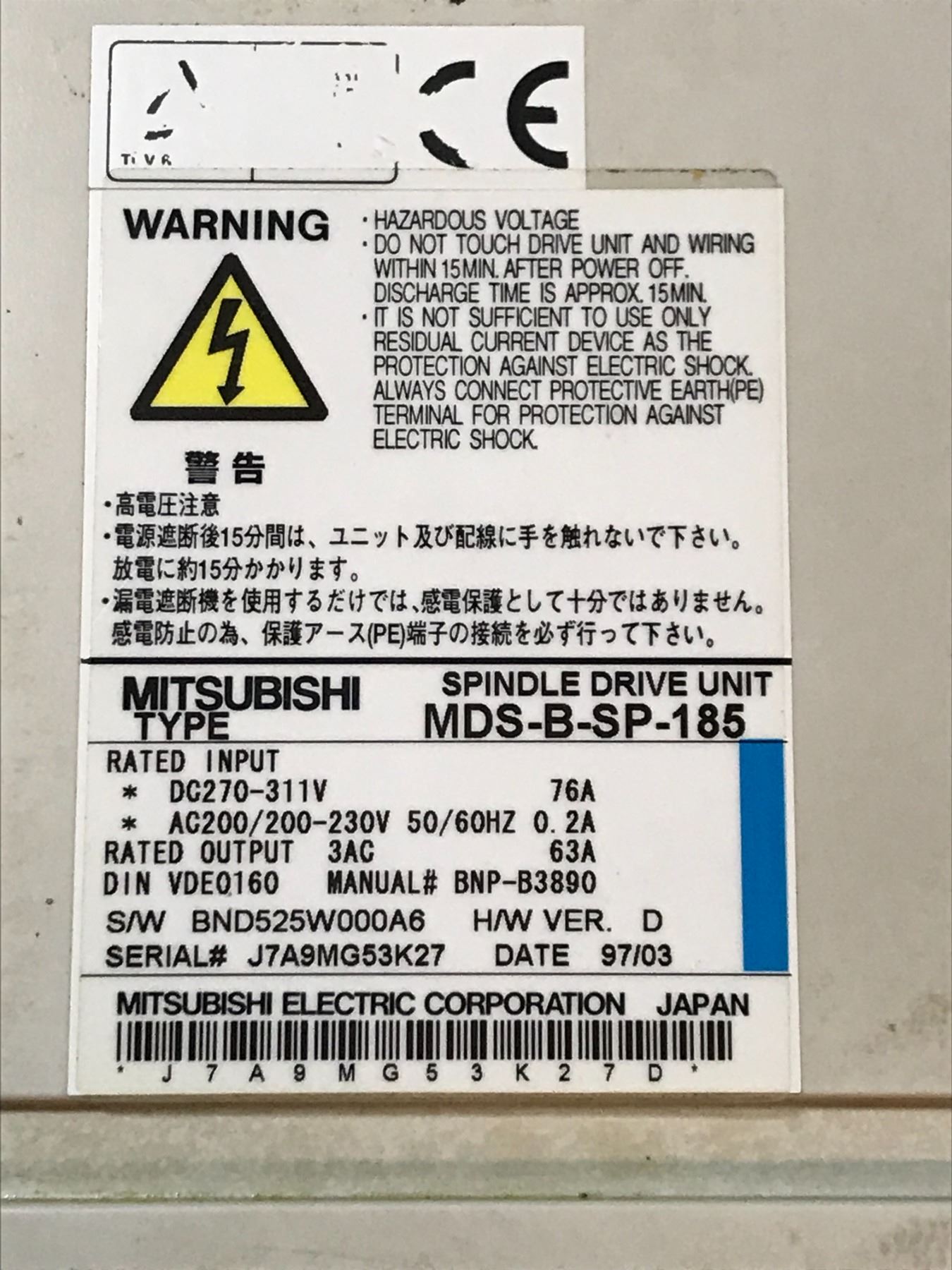 MITSUBISHI MDS-B-SP-185 SERVO DRIVE