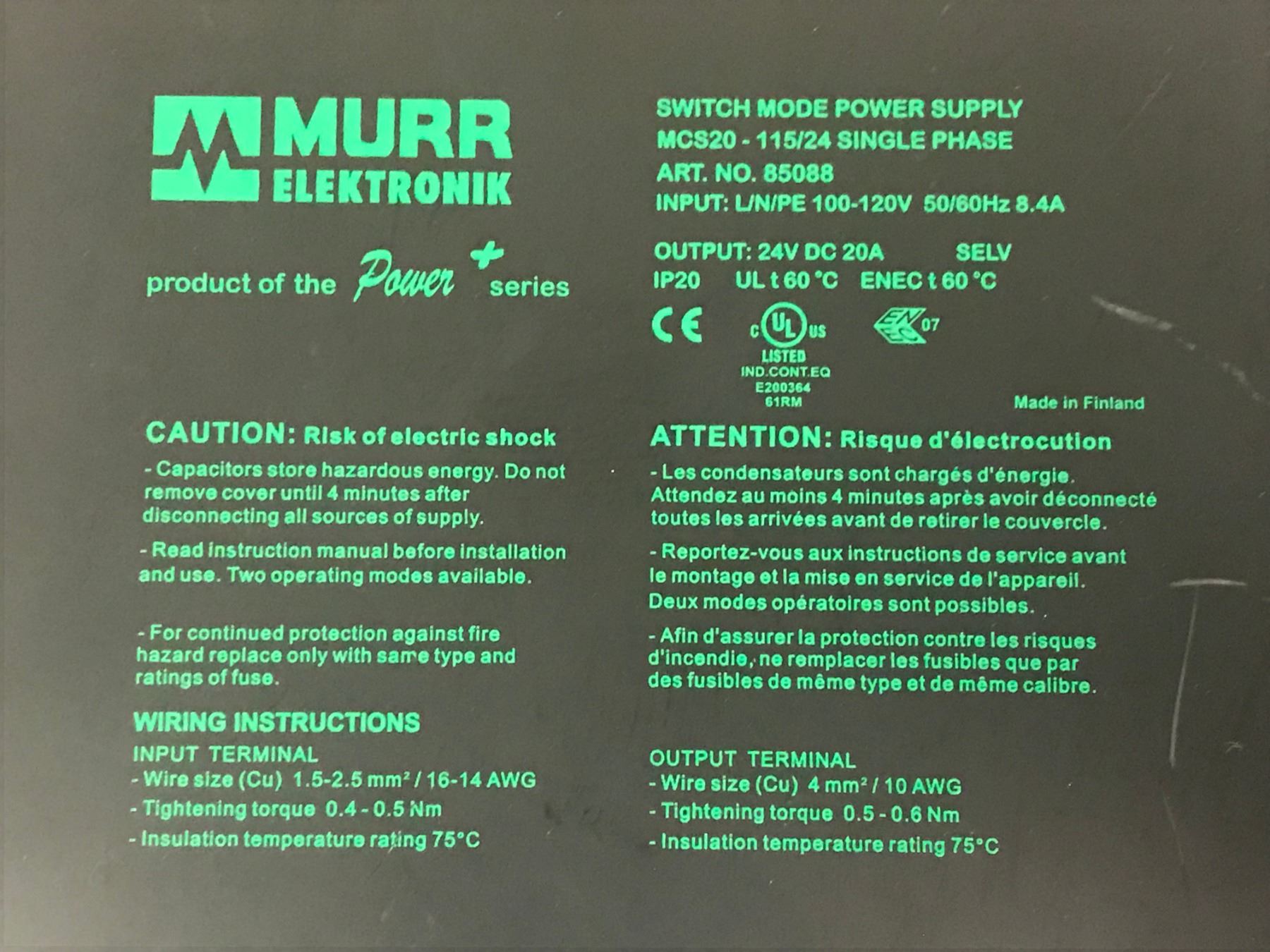 MURR ELEKTRONIK MCS20-115/24 SINGLE PHASE POWER SUPPLY