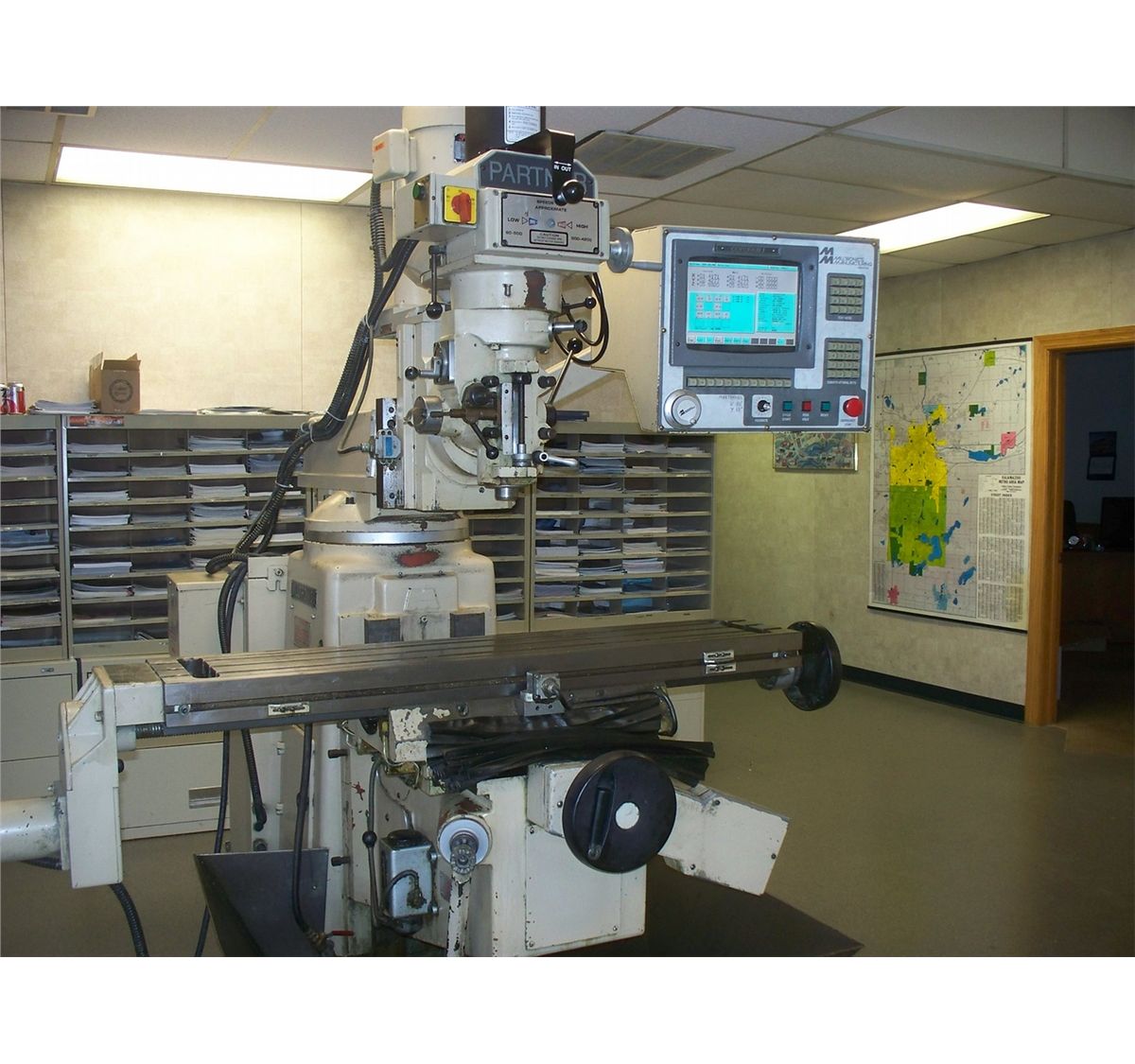 Machine set up to run in Manual operational or Full CNC! Machine came from a vocational trade school and saw VERY LITTLE Use!