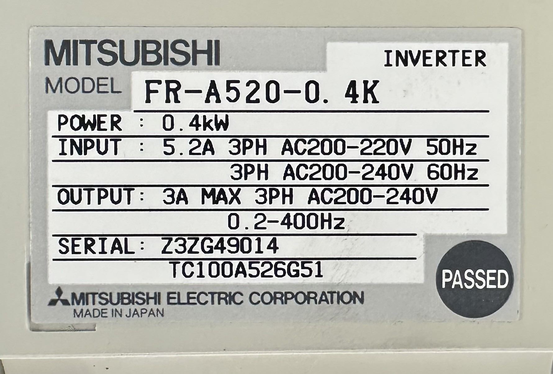 Mitsubishi #FR-A520-0.4K Inverter