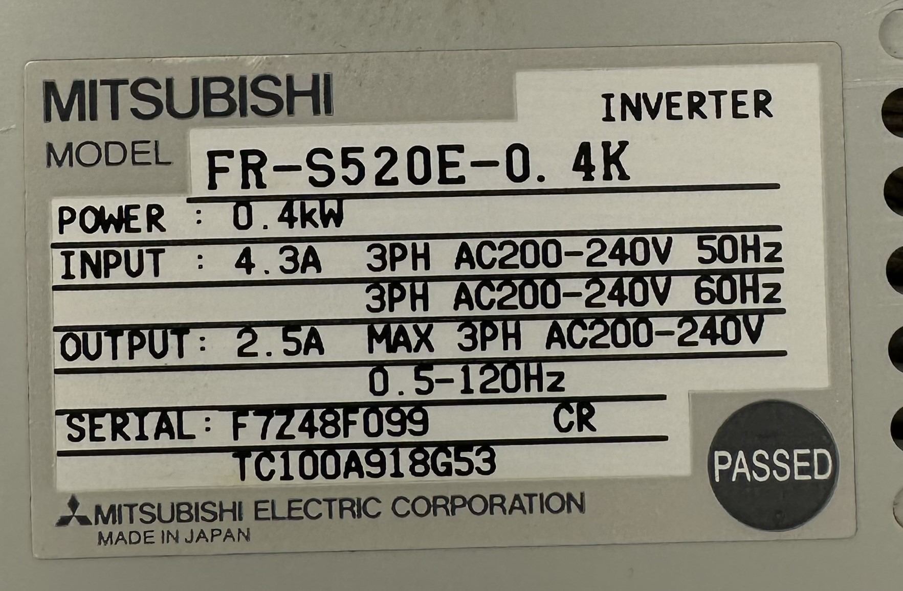 Mitsubishi #FR-S520E-0.4K Inverter