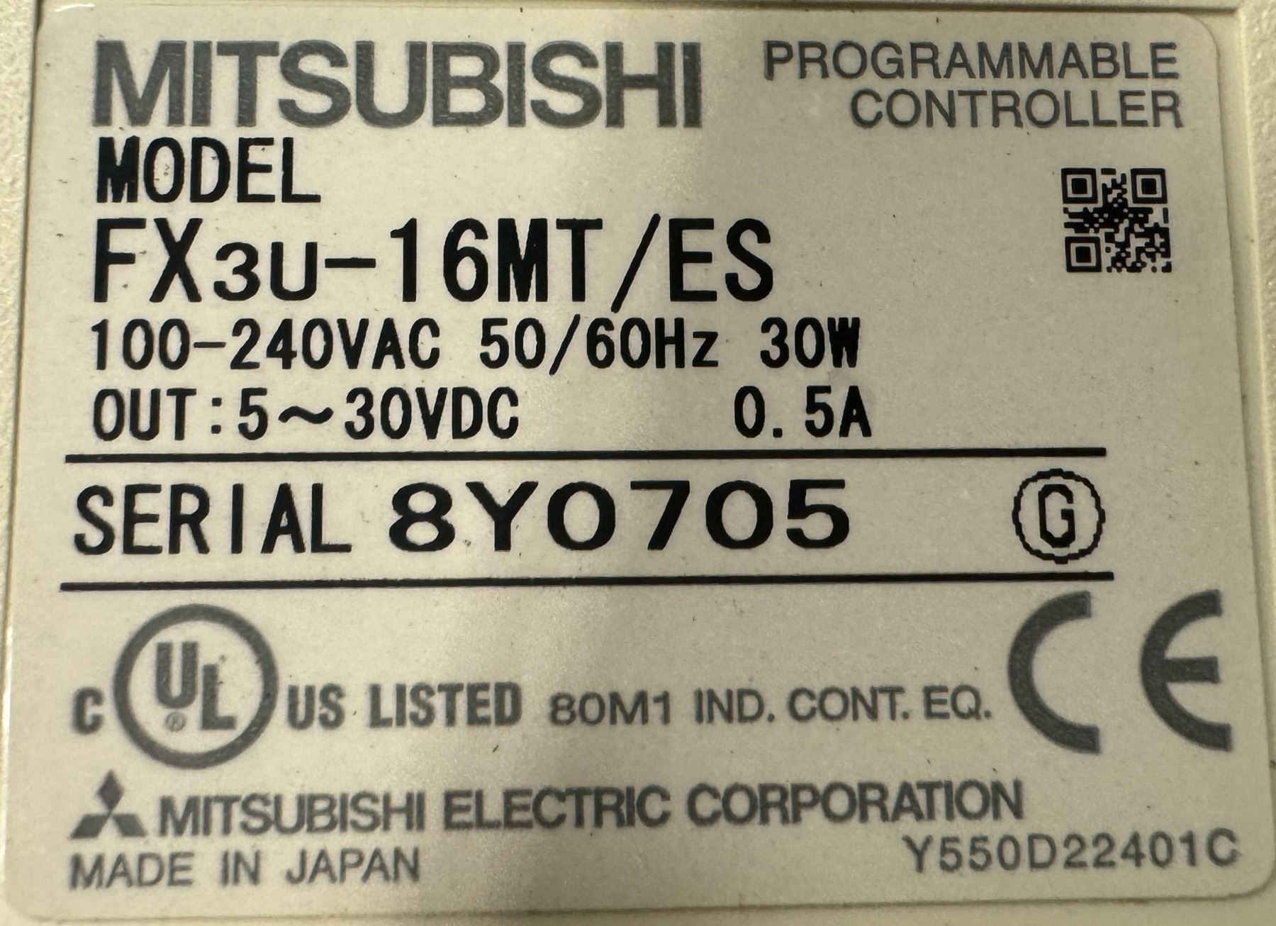 Mitsubishi #FX3U-16MT/ES Programmable Controller