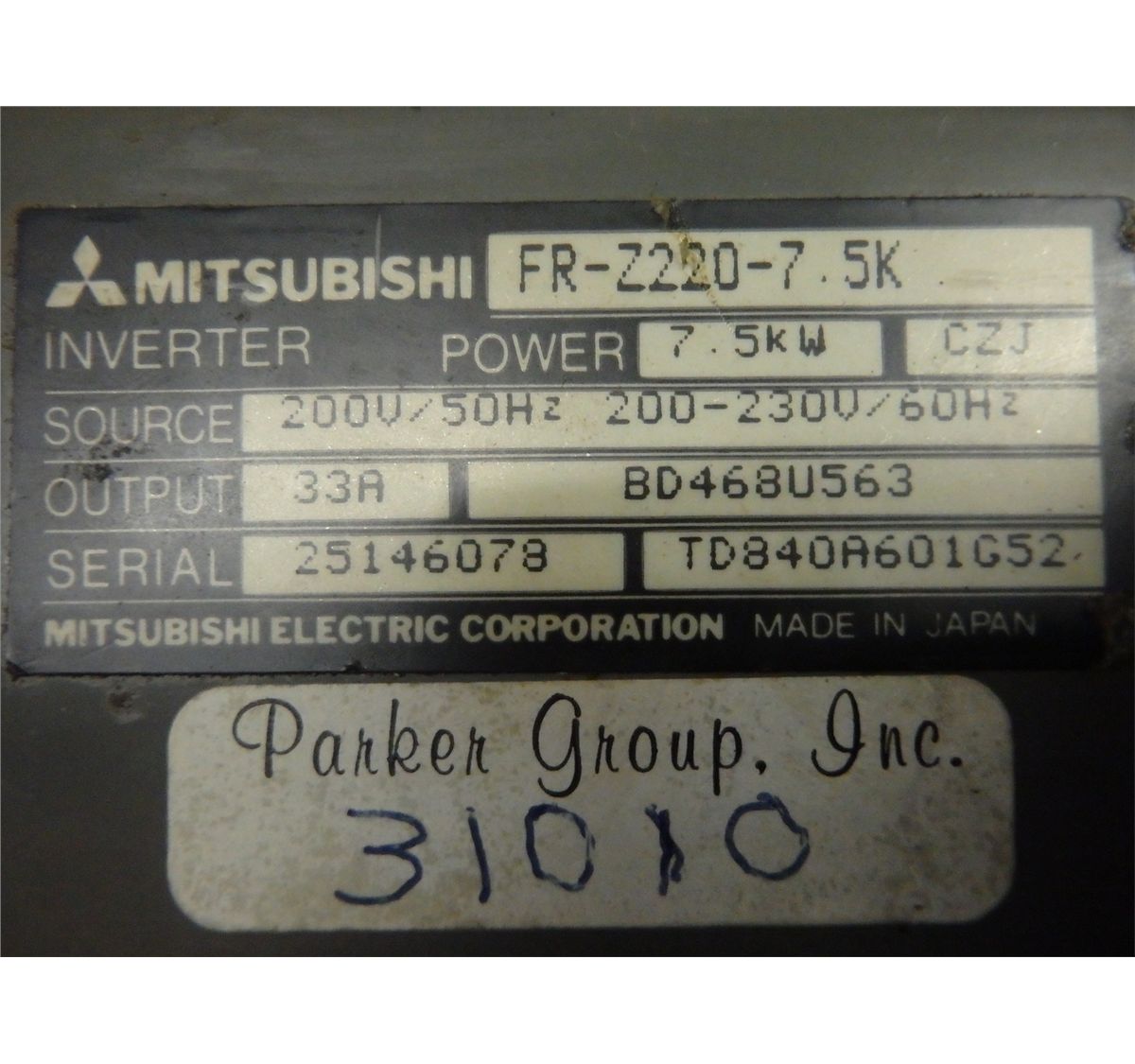 Mitsubishi Freqrol Z200 Inverter Drive, M/N- FR-Z220-7.5K, B/N- BD645E050G52B