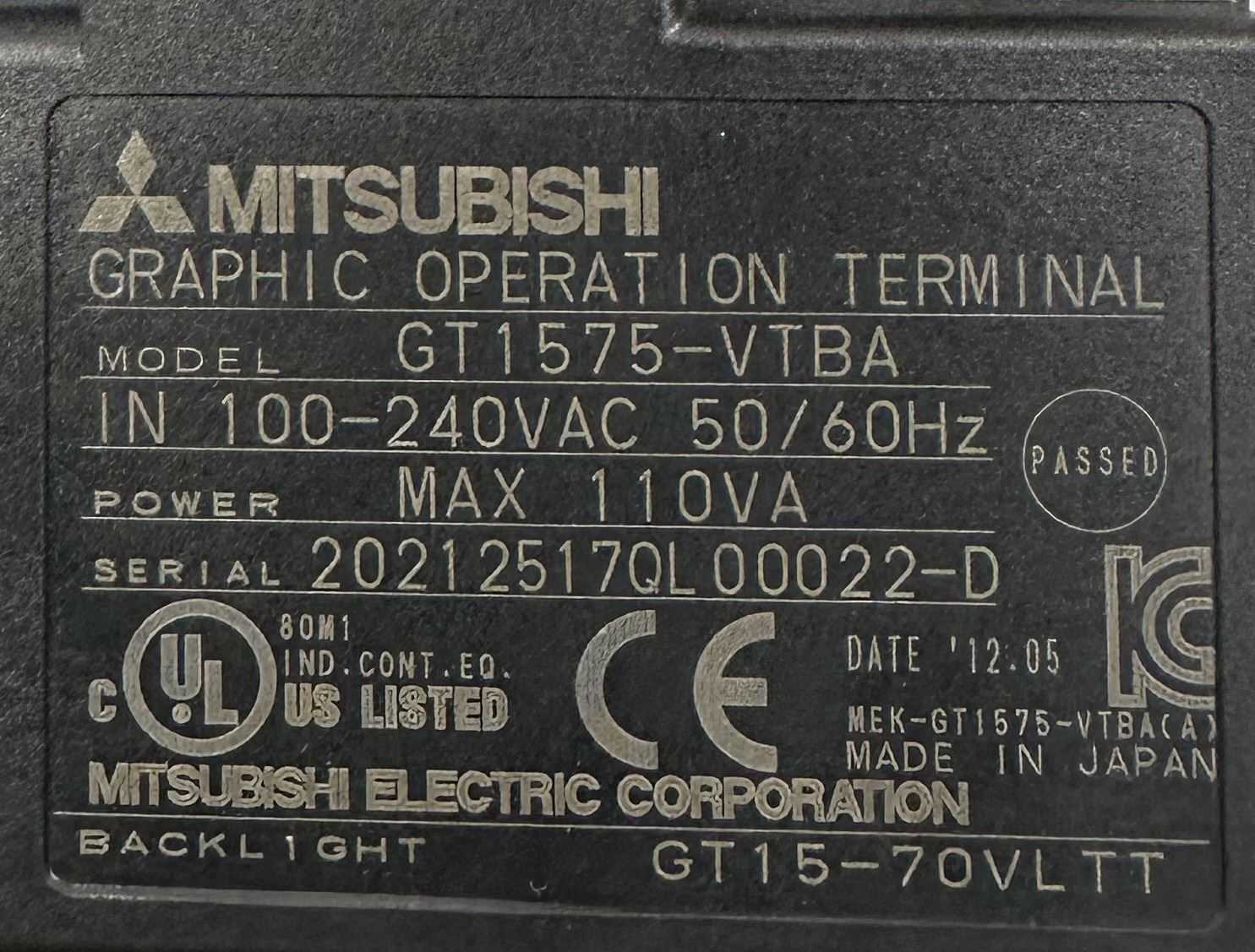 Mitsubishi #GT1575-VTBA Graphic Operation Terminal