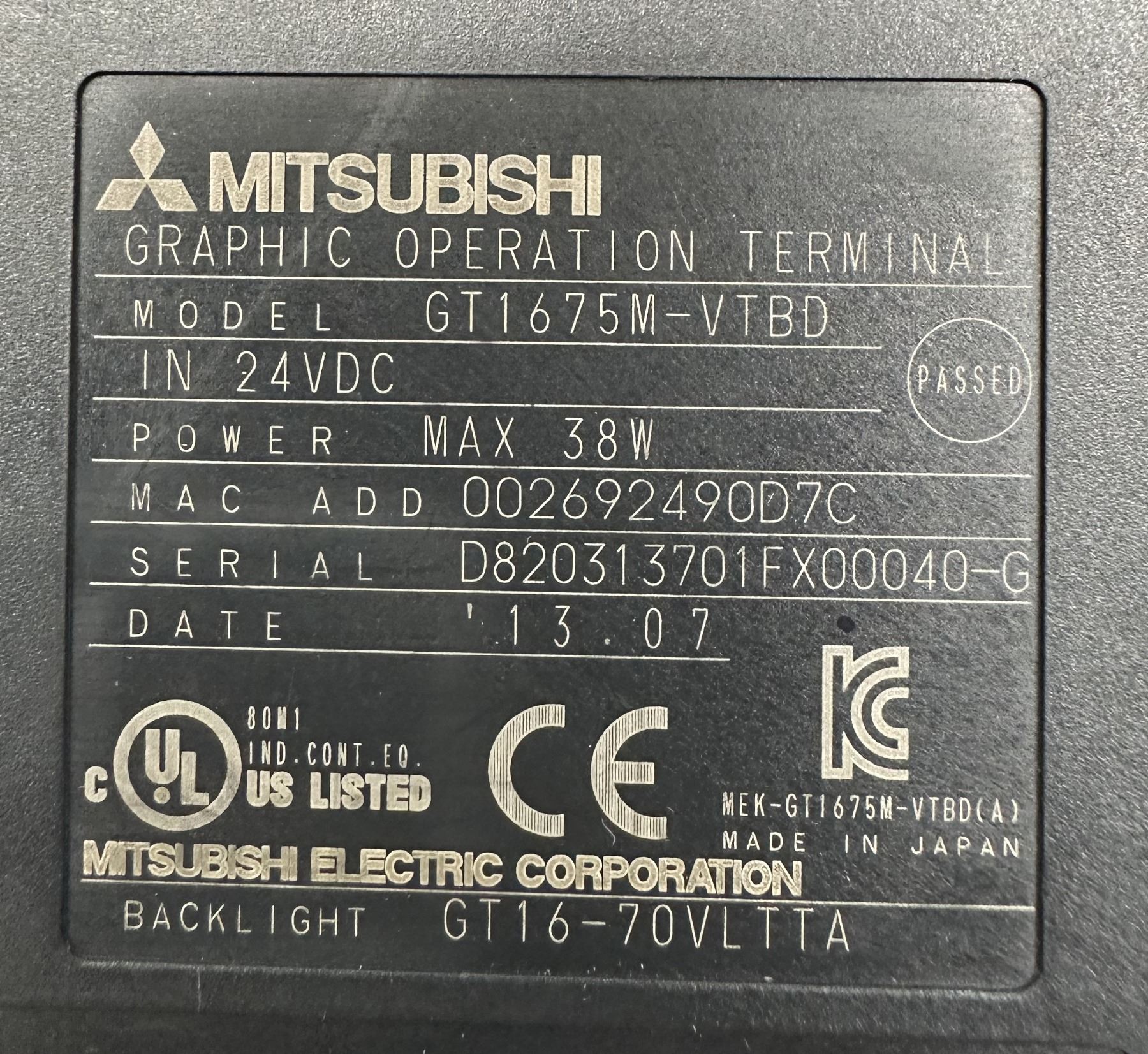 Mitsubishi #GT1675M-VTBD Graphic Operation Terminal