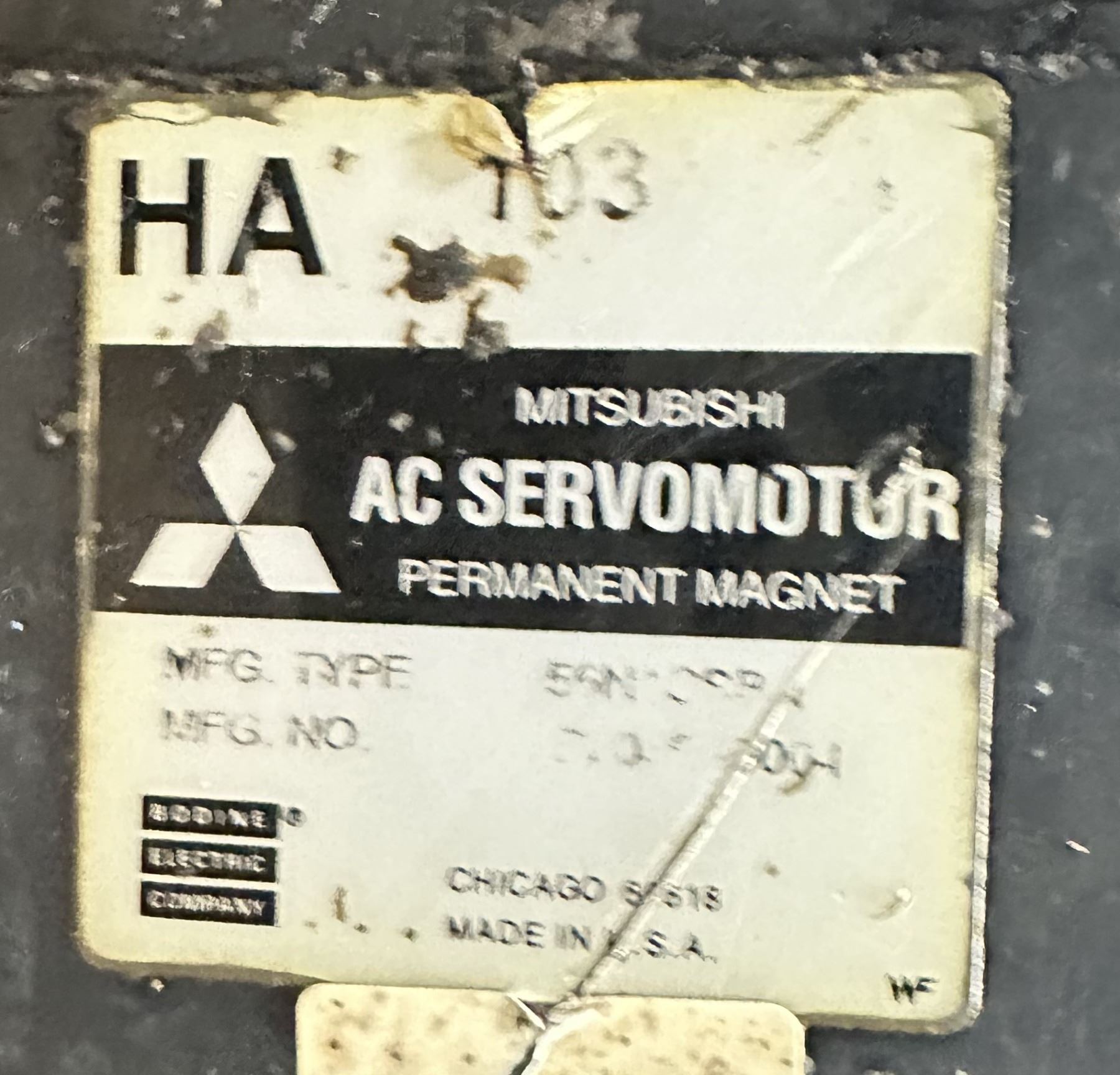 Mitsubishi #HA 103 AC Servo Motor w/#J4AVPOTZG1S Rotary Encoder OSE104