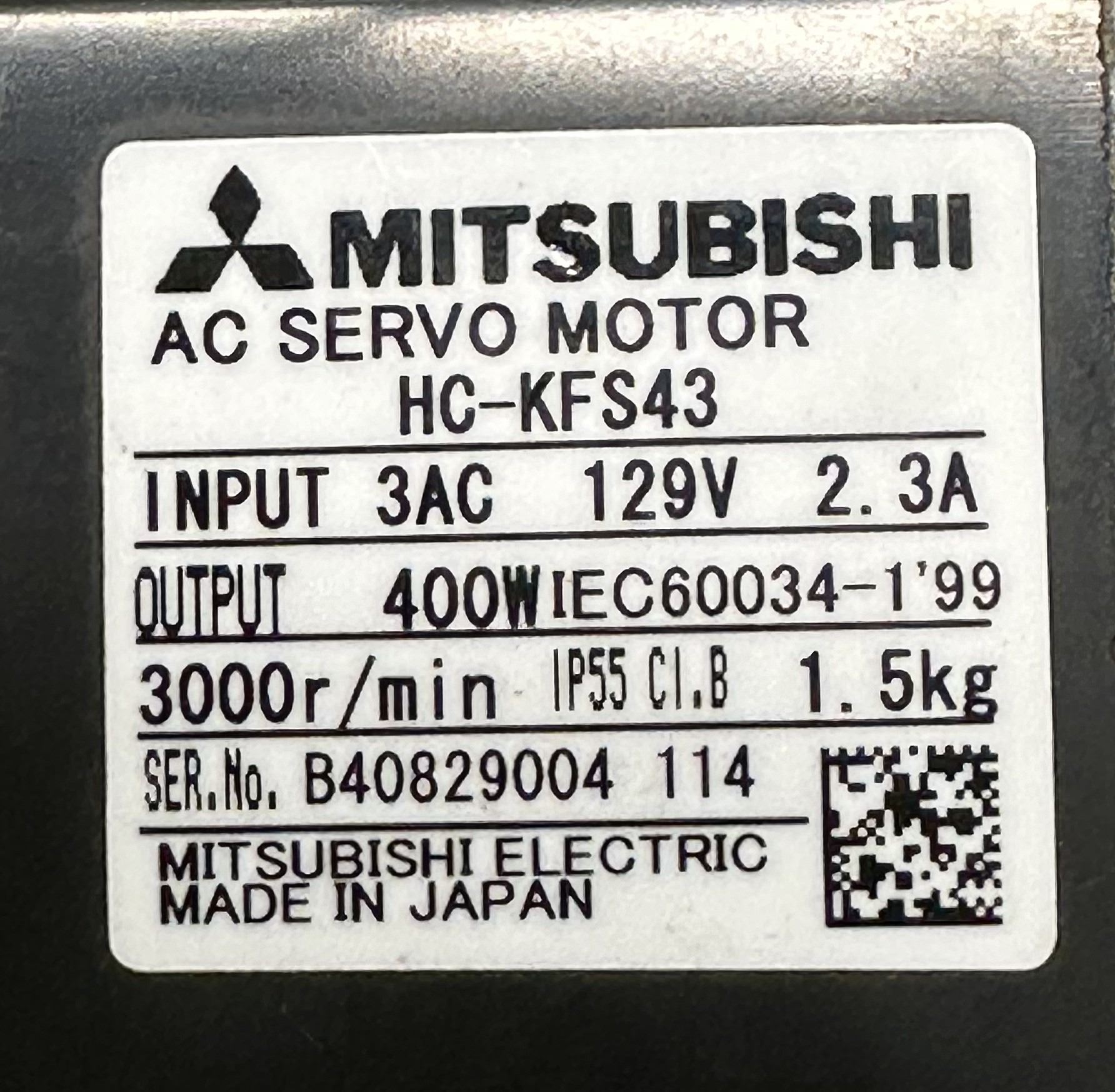 Mitsubishi #HC-KFS43 AC Servo Motor
