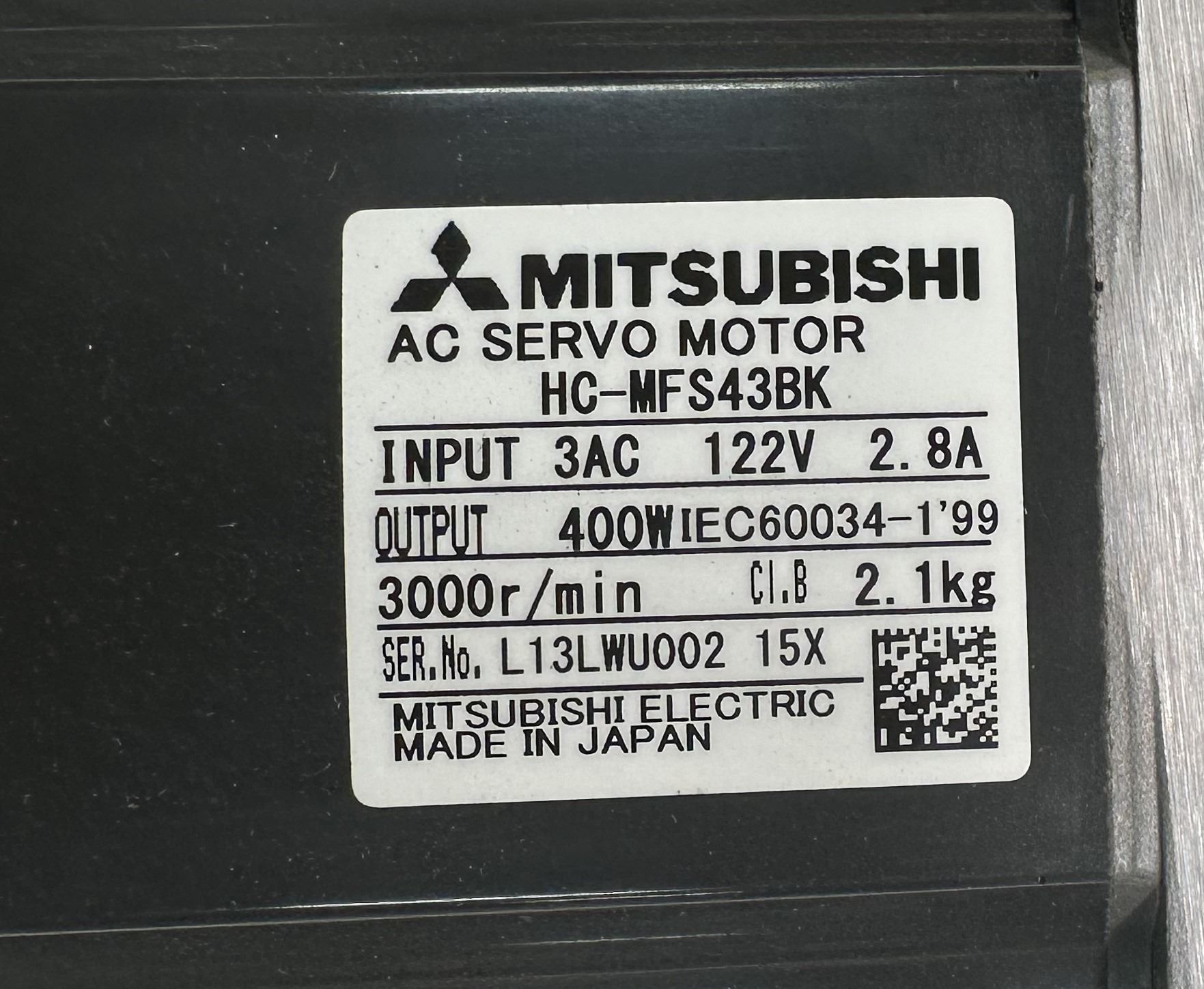 Mitsubishi #HC-MFS43BK AC Servo Motor