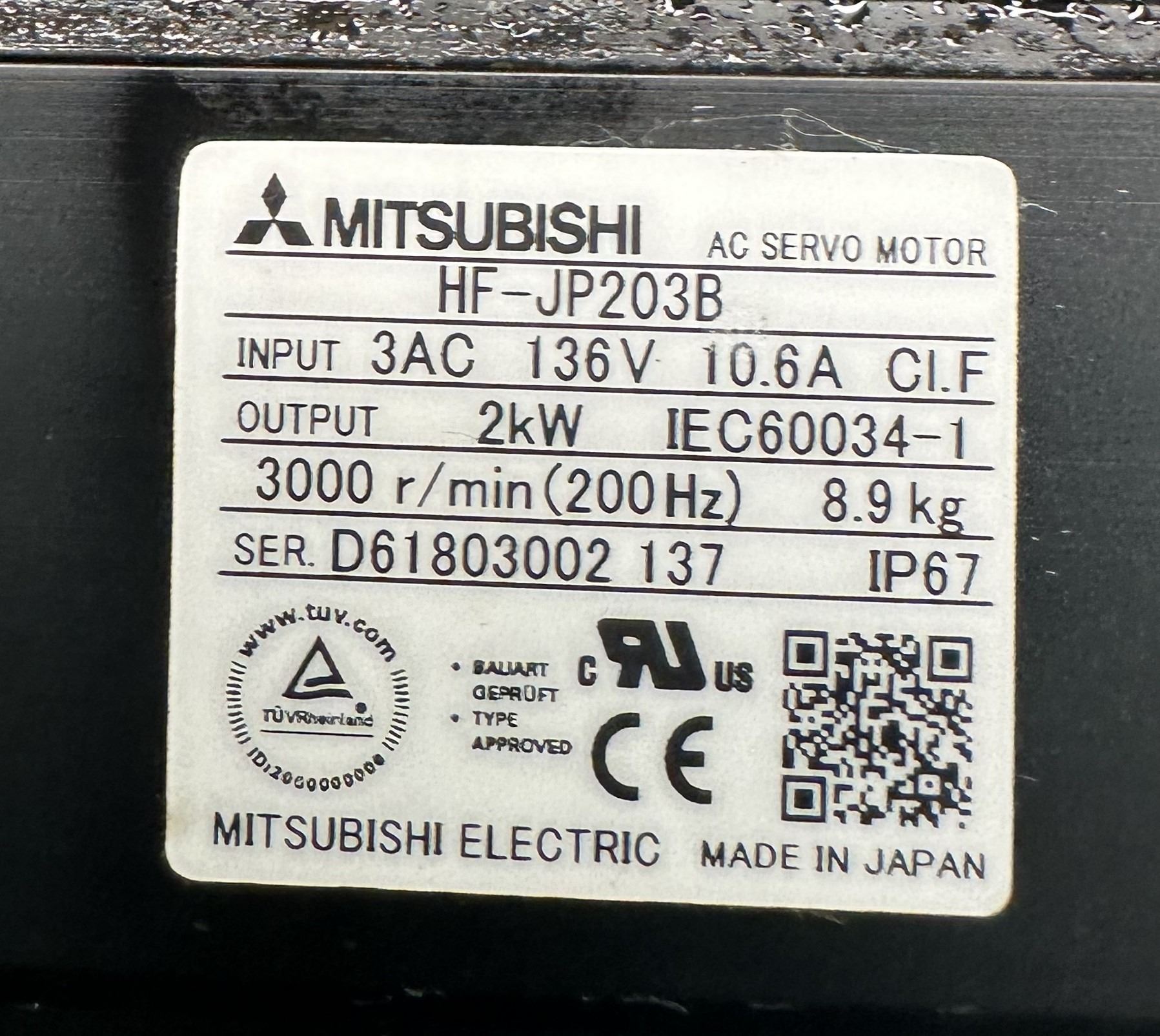 Mitsubishi #HF-JP203B AC Servo Motor