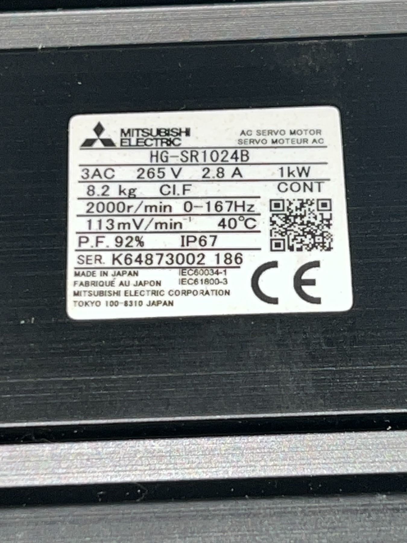 Mitsubishi #HG-SR1024B AC Servo Motor