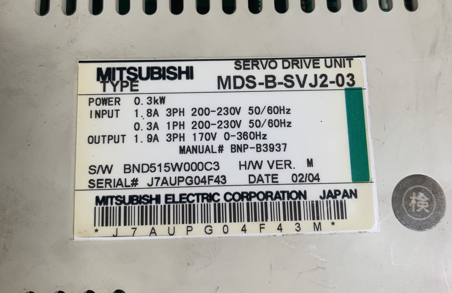 Mitsubishi #MDS-B-SVJ2-03 Servo Drive Unit