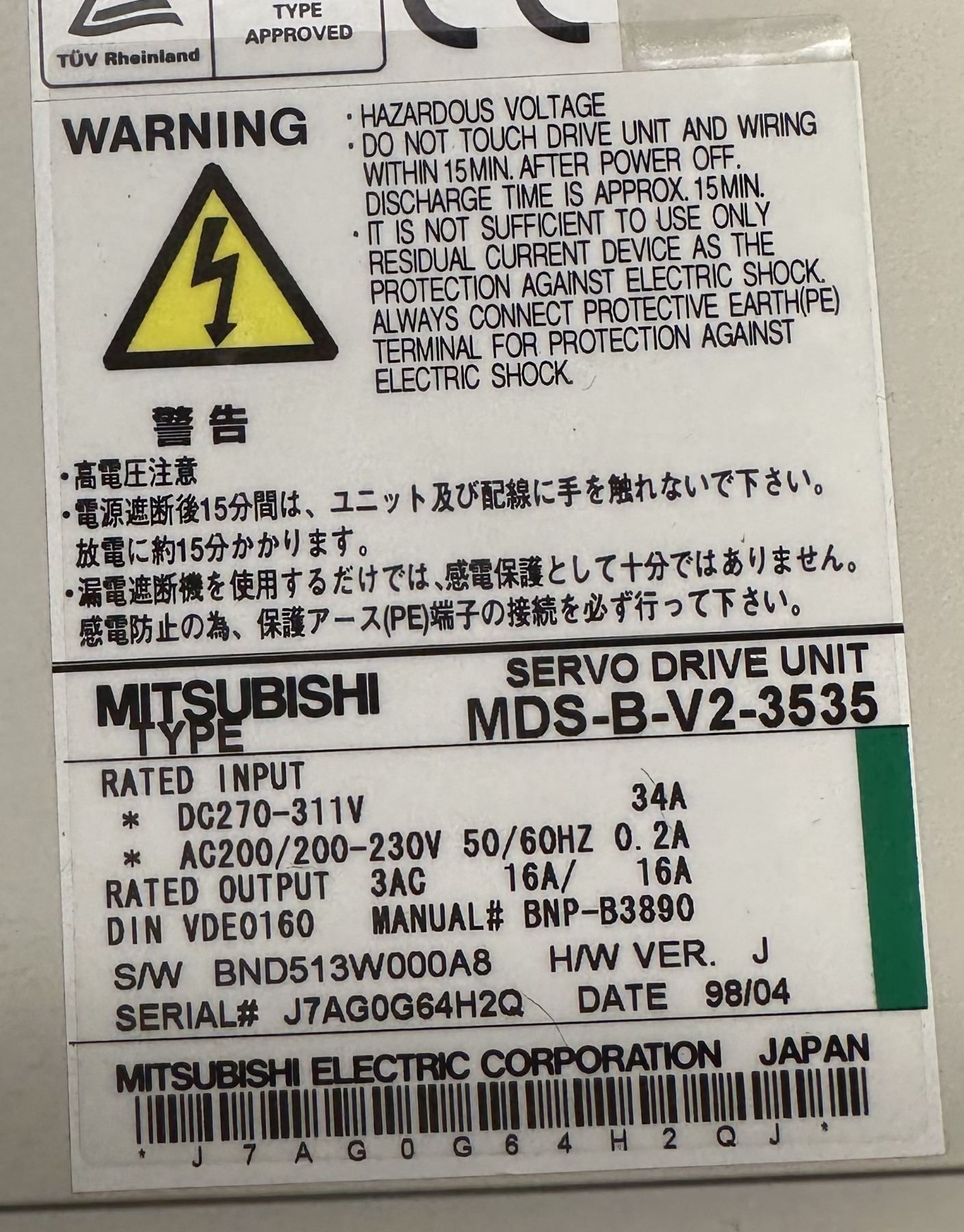 Mitsubishi #MDS-B-V2-3535 Servo Drive Unit
