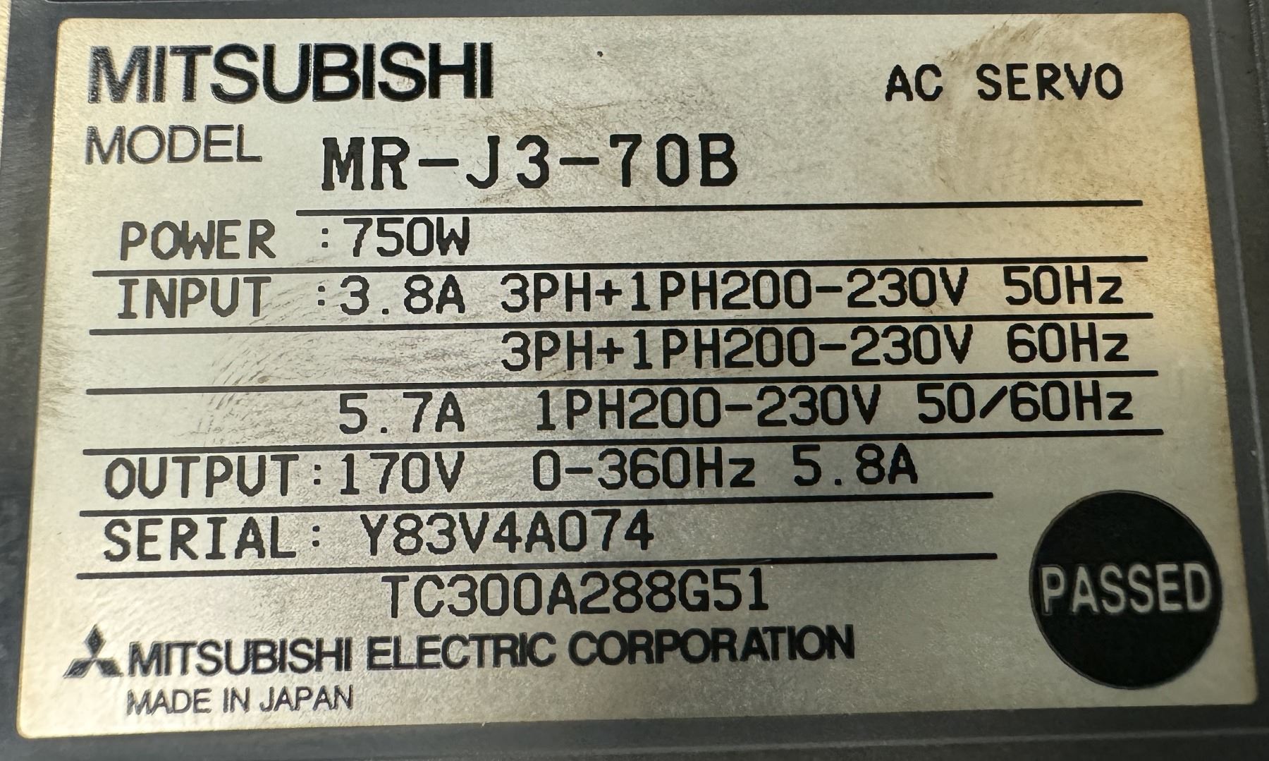 Mitsubishi #MR-J3-70B AC Servo Drive