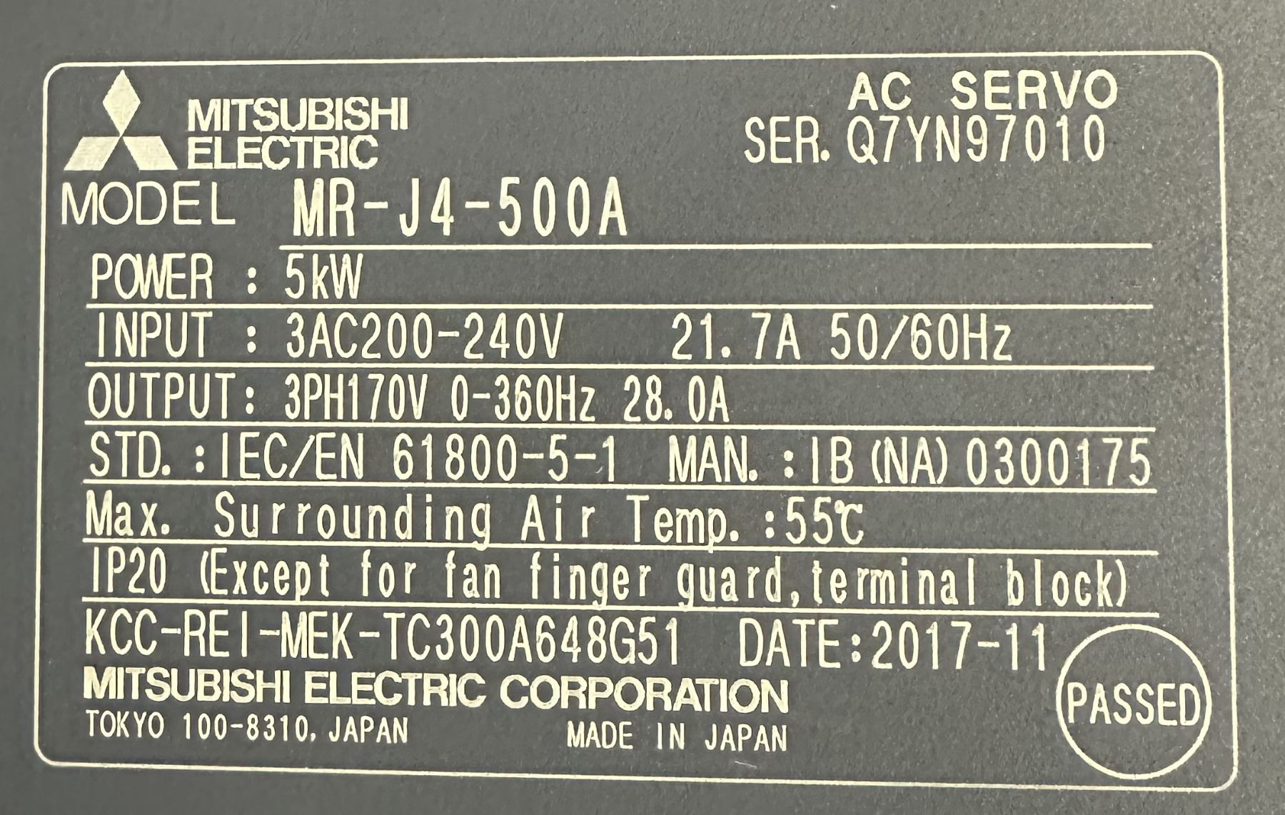 Mitsubishi #MR-J4-500A AC Servo Drive