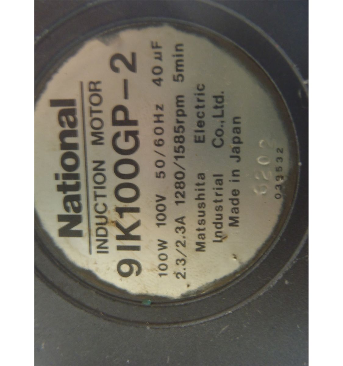 National Induction Motor w/ Gear Head #9GBK-18, Motor #9IK100GP-2
