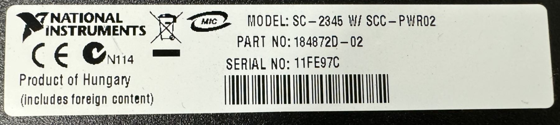 National Instruments #SC-2345 W/ SCC-PWR02 #184872D-02 Signal Conditioning