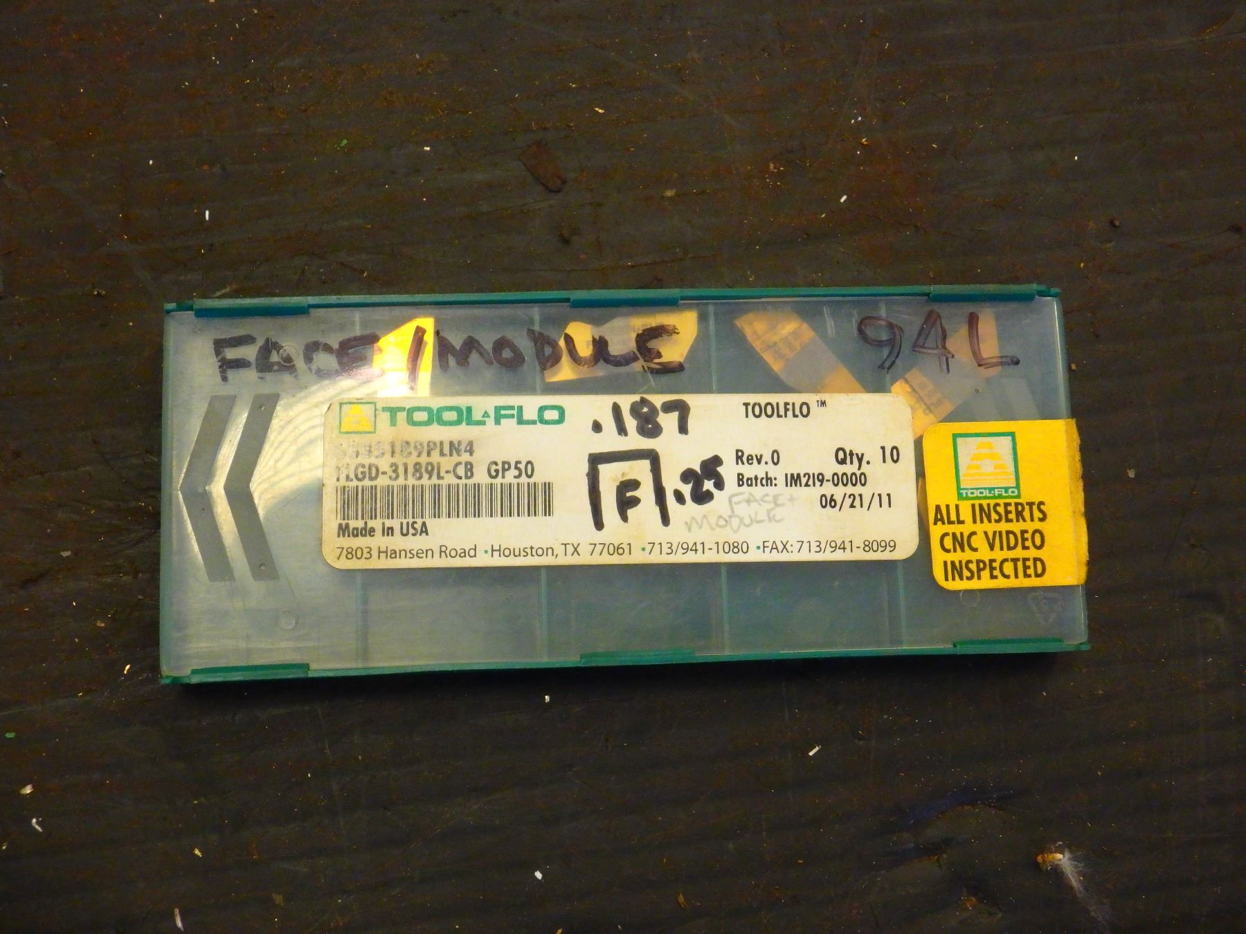 New Tool-Flo Carbide Inserts, P/N: FLGD-3189L-CB, GP50