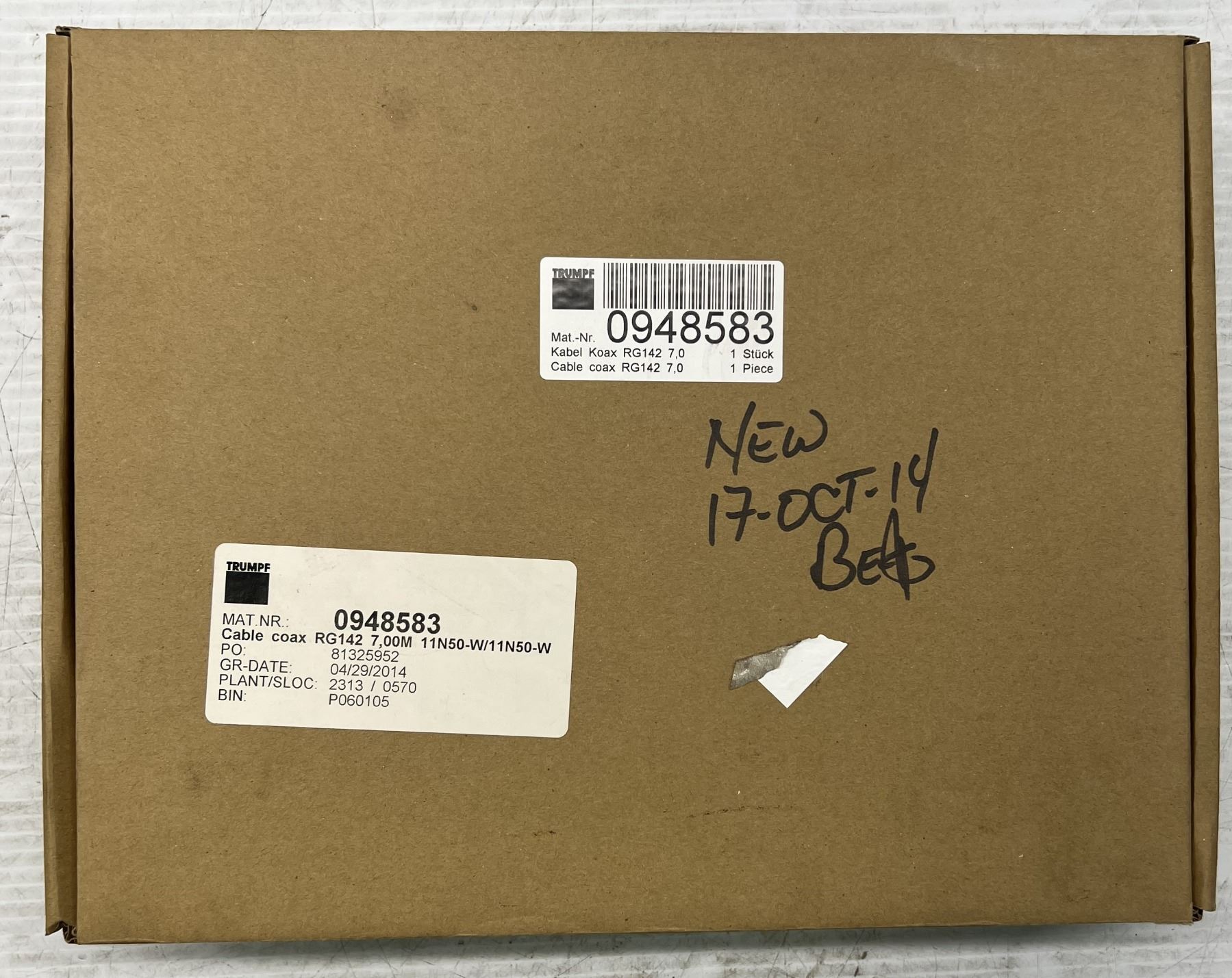 New? Trumpf #RG142 Cable Coax