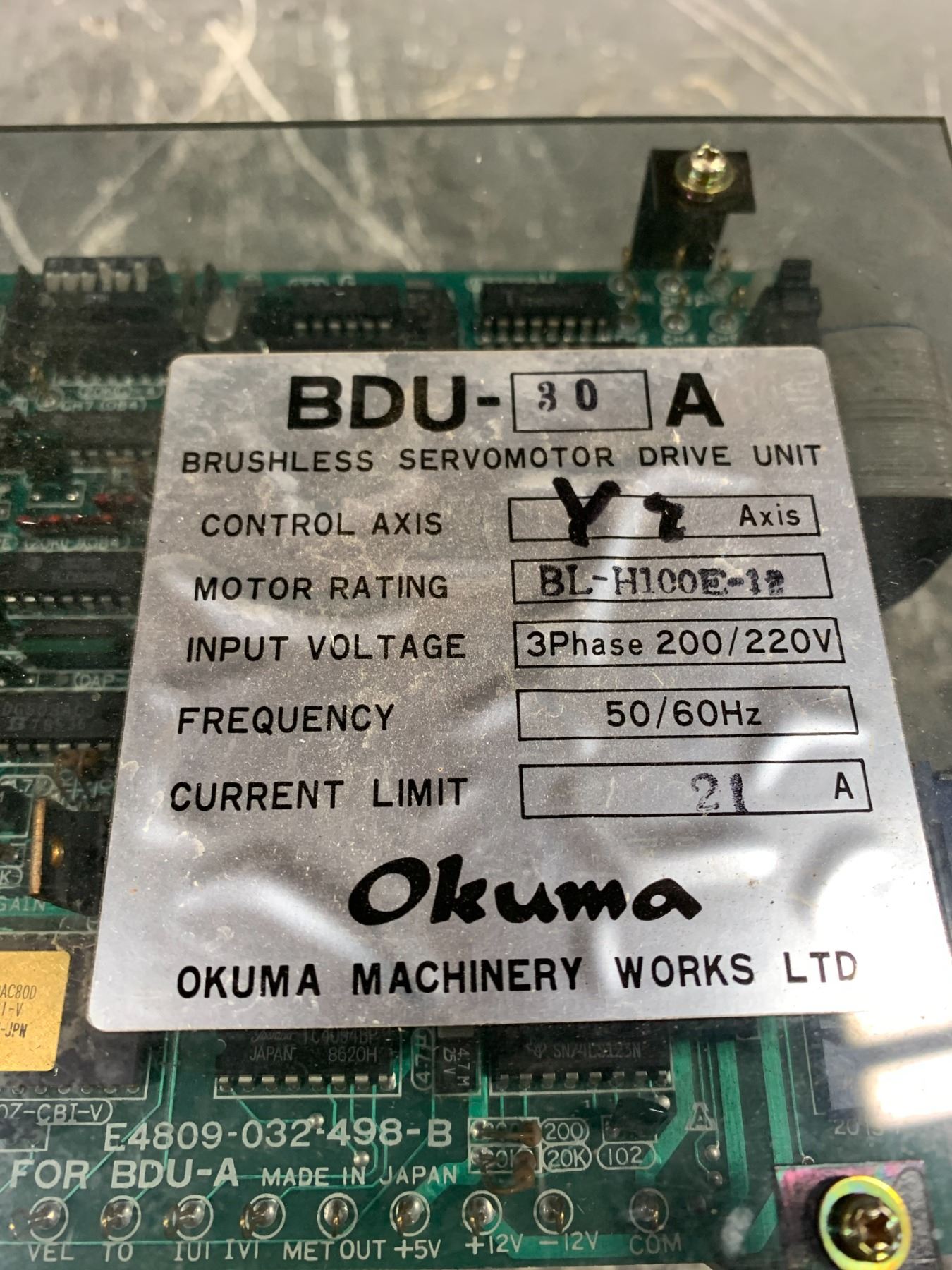 OKUMA BDU-30A SERVOMOTOR DRIVE UNIT_E4809-032-498-B TOP BOARD