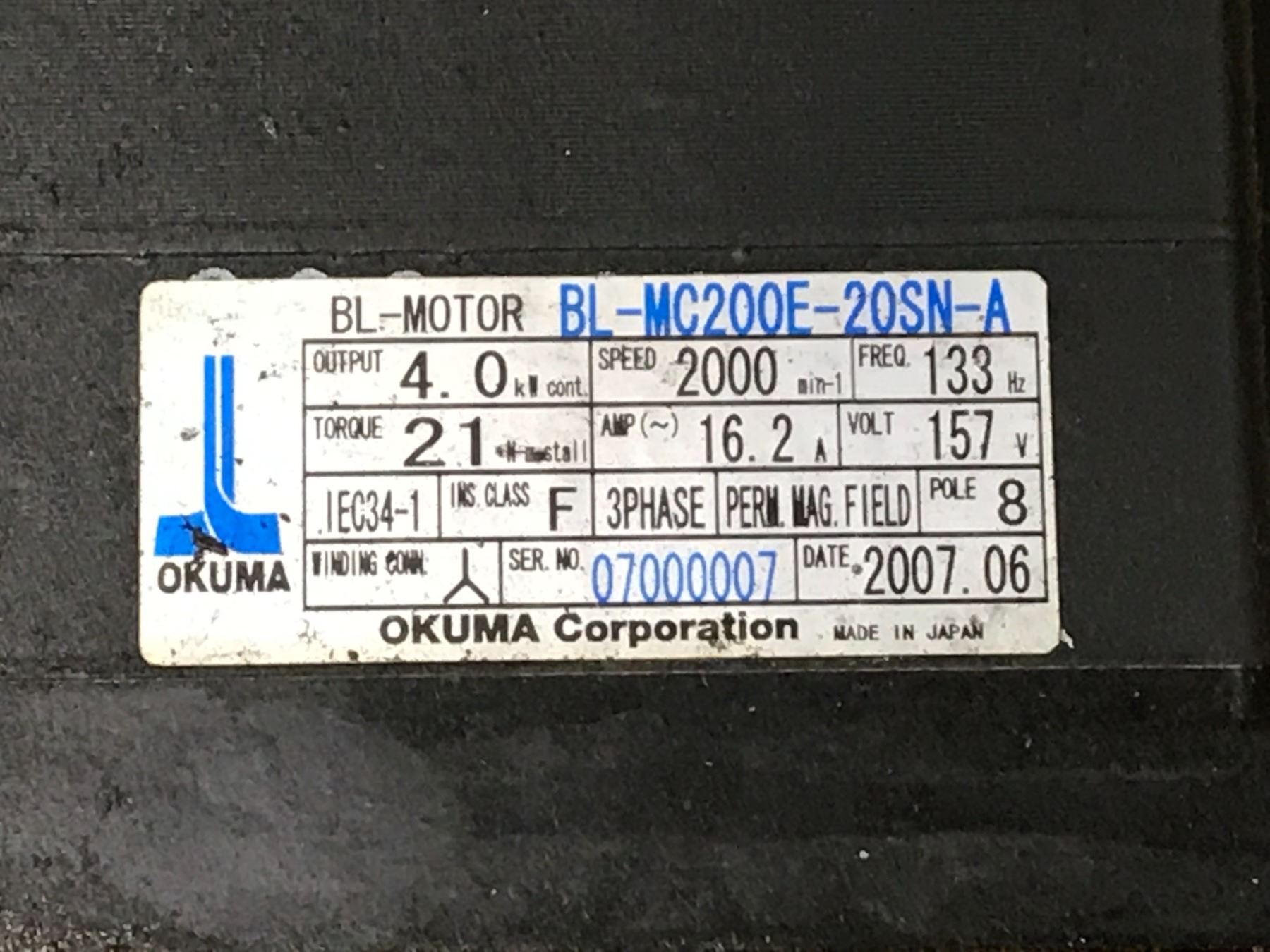 OKUMA BL-MC200E-20SN-A BL-MOTOR