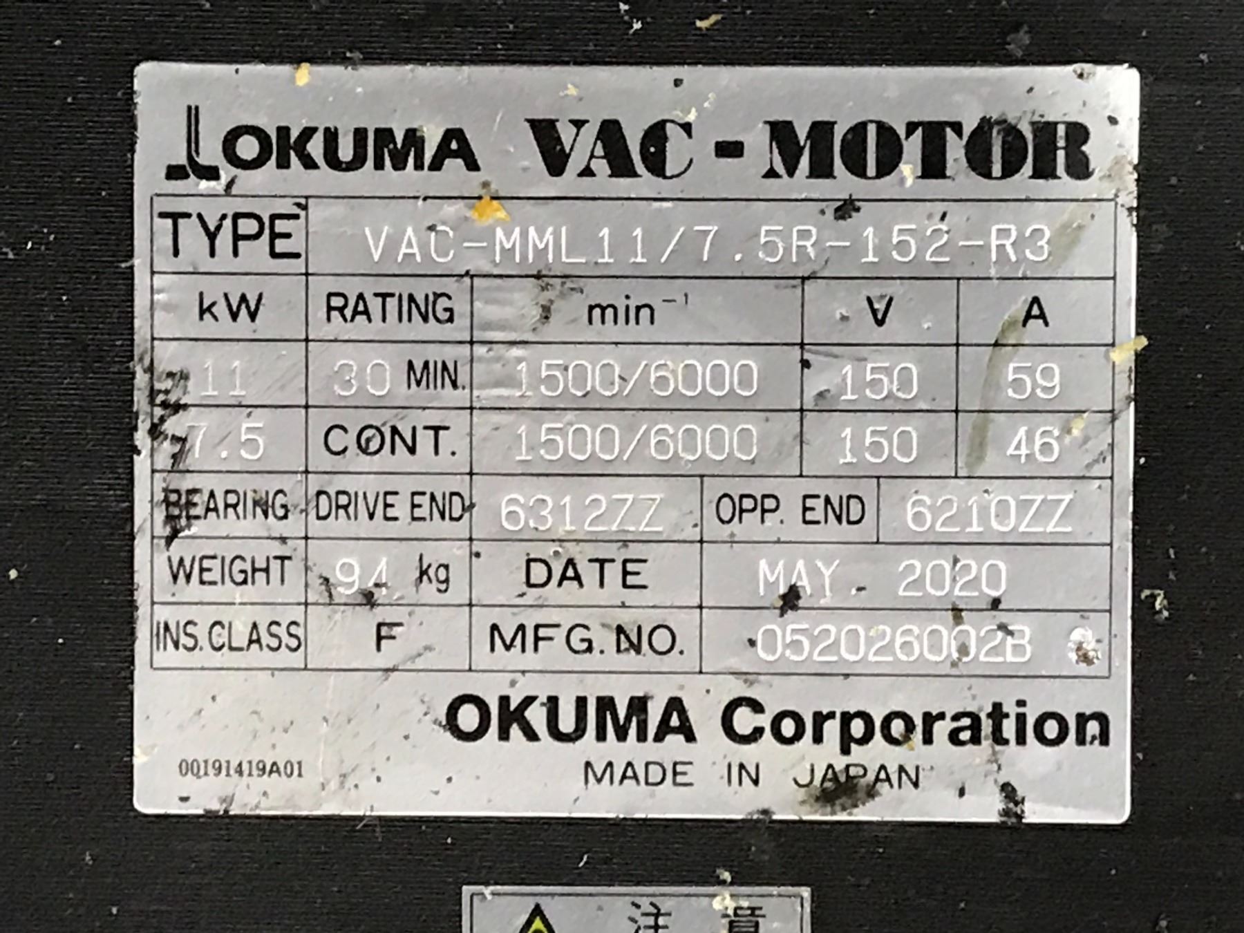 OKUMA VAC-MML11/7.5R-152-R3 VAC-MOTOR