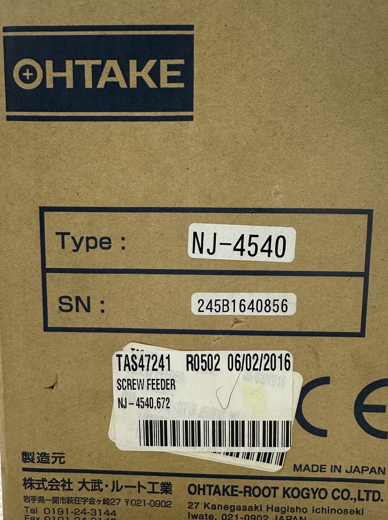Ohtake #NJ-4540 Screw Feeder