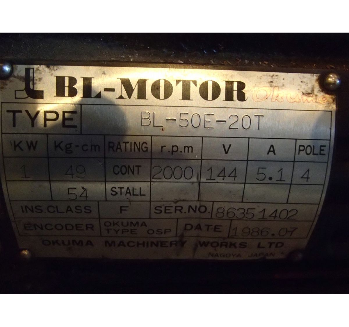 Okuma BL Motor Model: BL-50E-20T