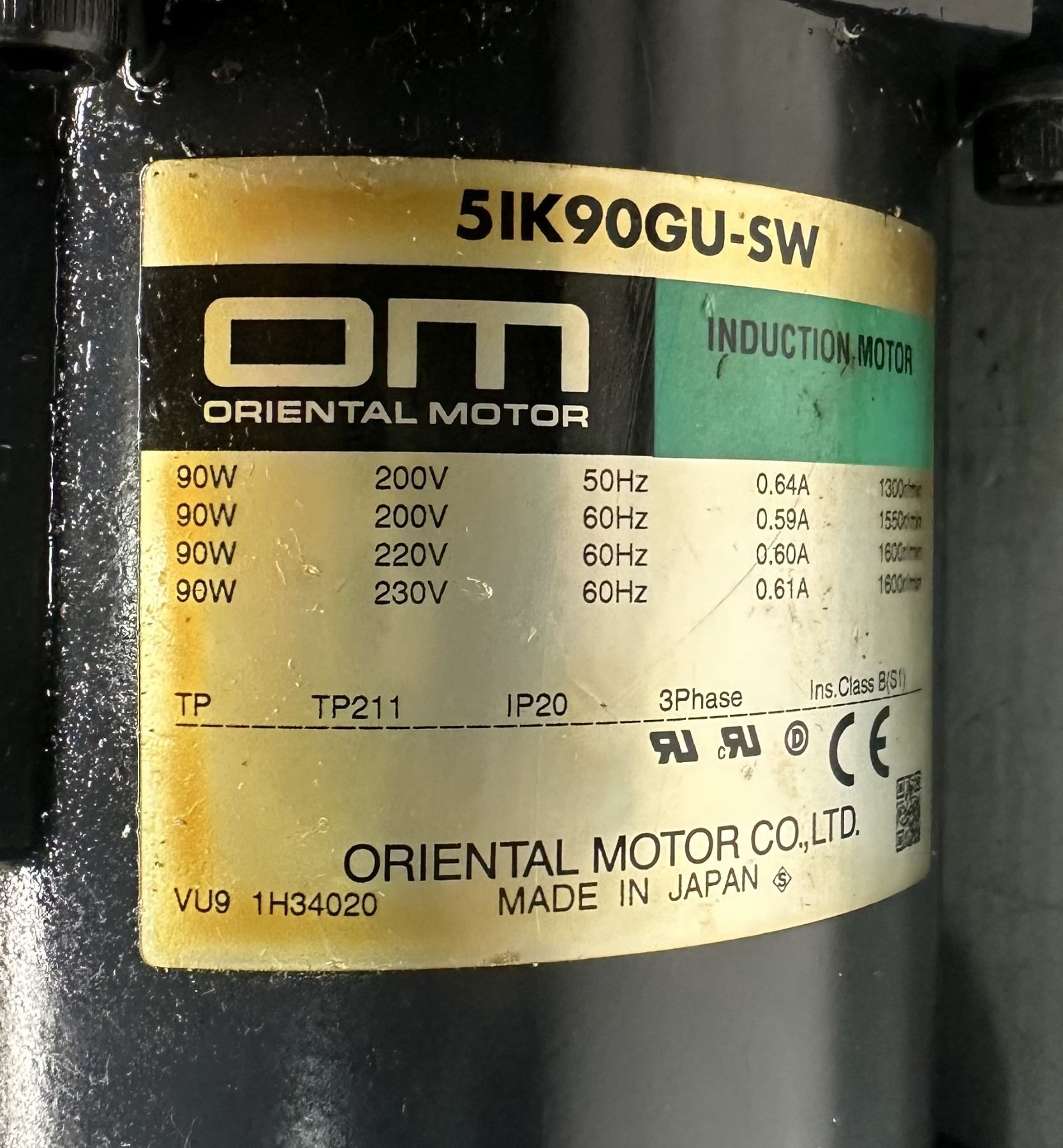 Oriental Motor #5IK90GU-SW Induction Motor w/#5GU25RH Gear Head