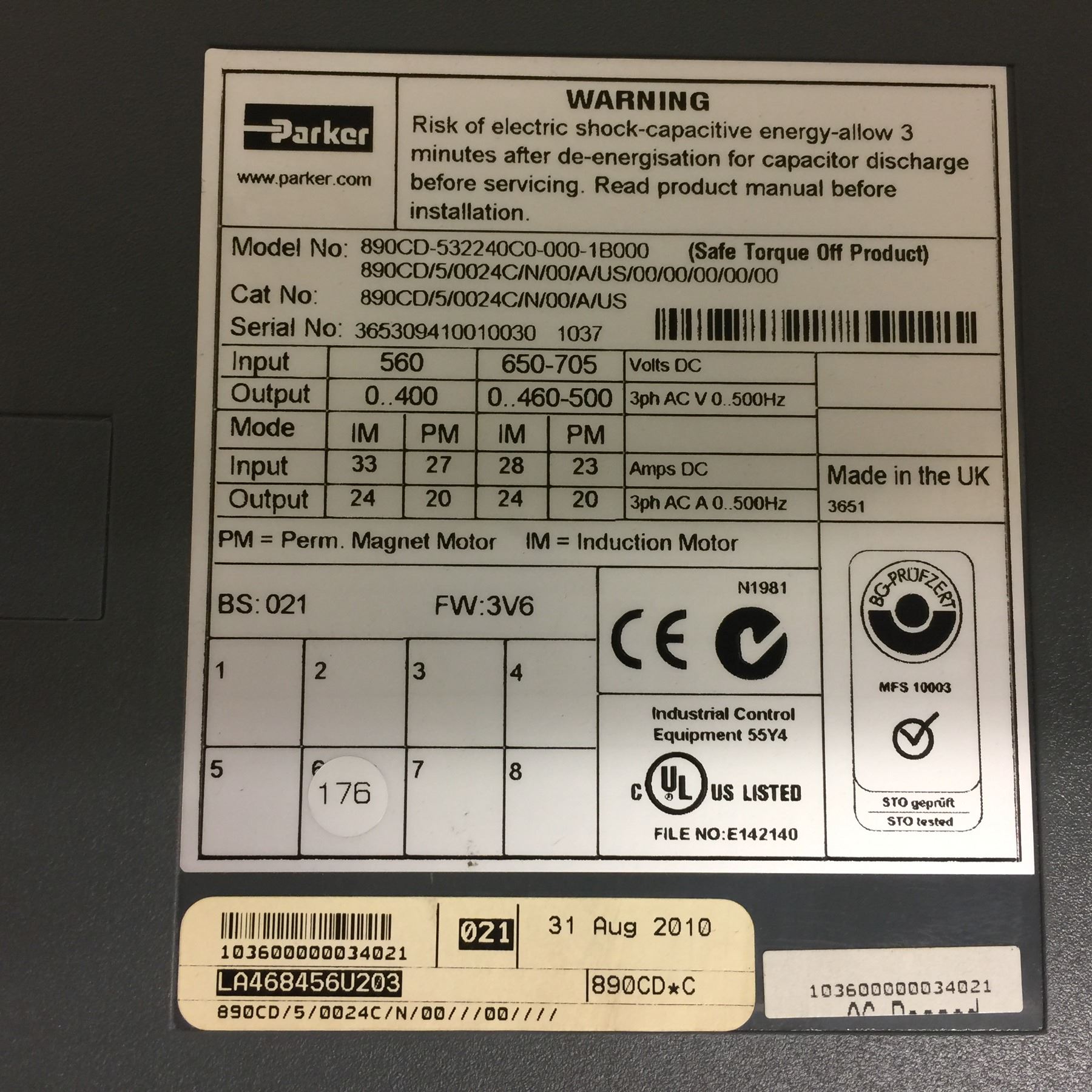 Parker 890CD-532240C0-000-1B000 Servo Driver