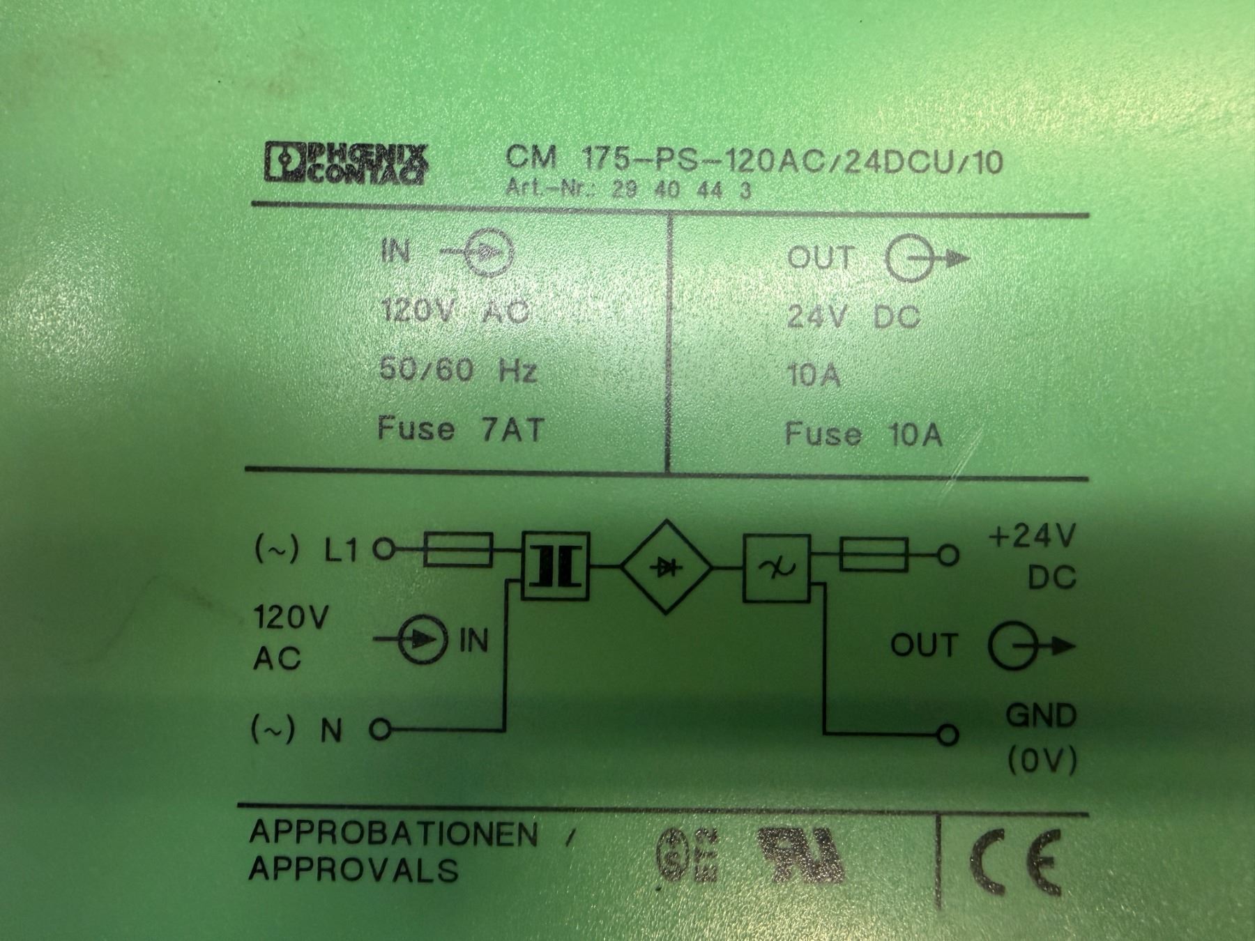 Phoenix Contact #CM 175-PS-120AC/24DCU/10 / # 29 40 44 3