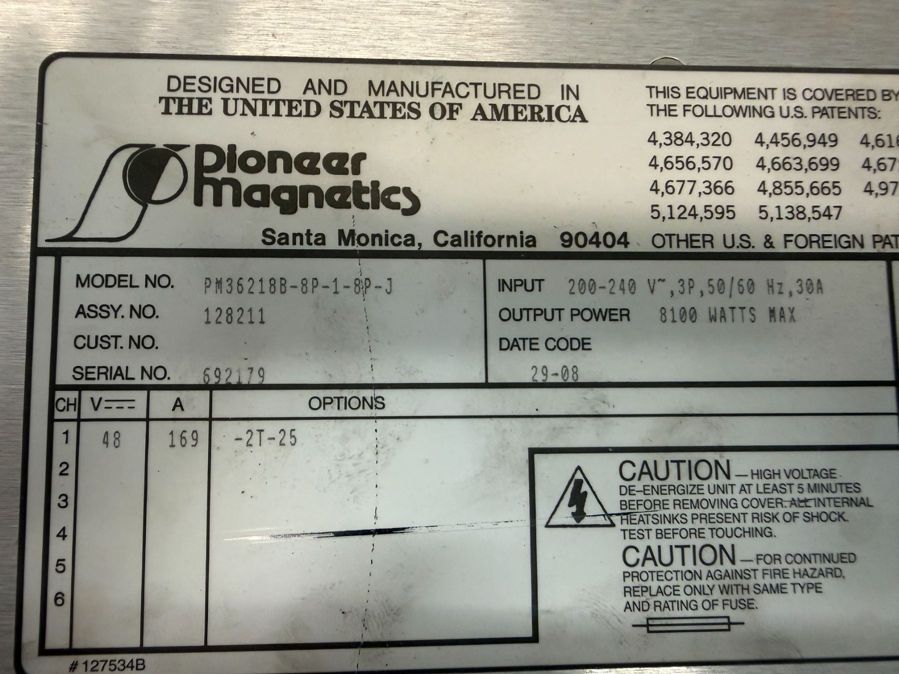 Pioneer Magnetics #PM36218B-1-8P-J