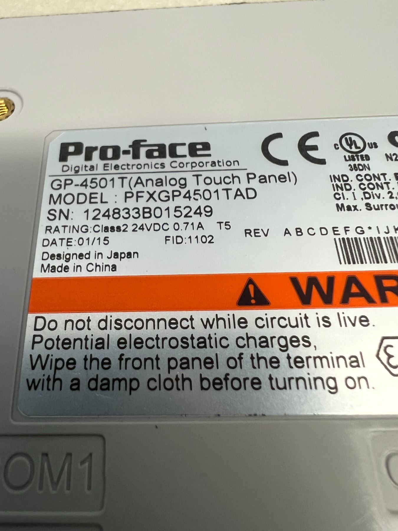 Pro-face #GP-4501T (ANALOG TOUCH PANEL) #PFXGP4501TAD