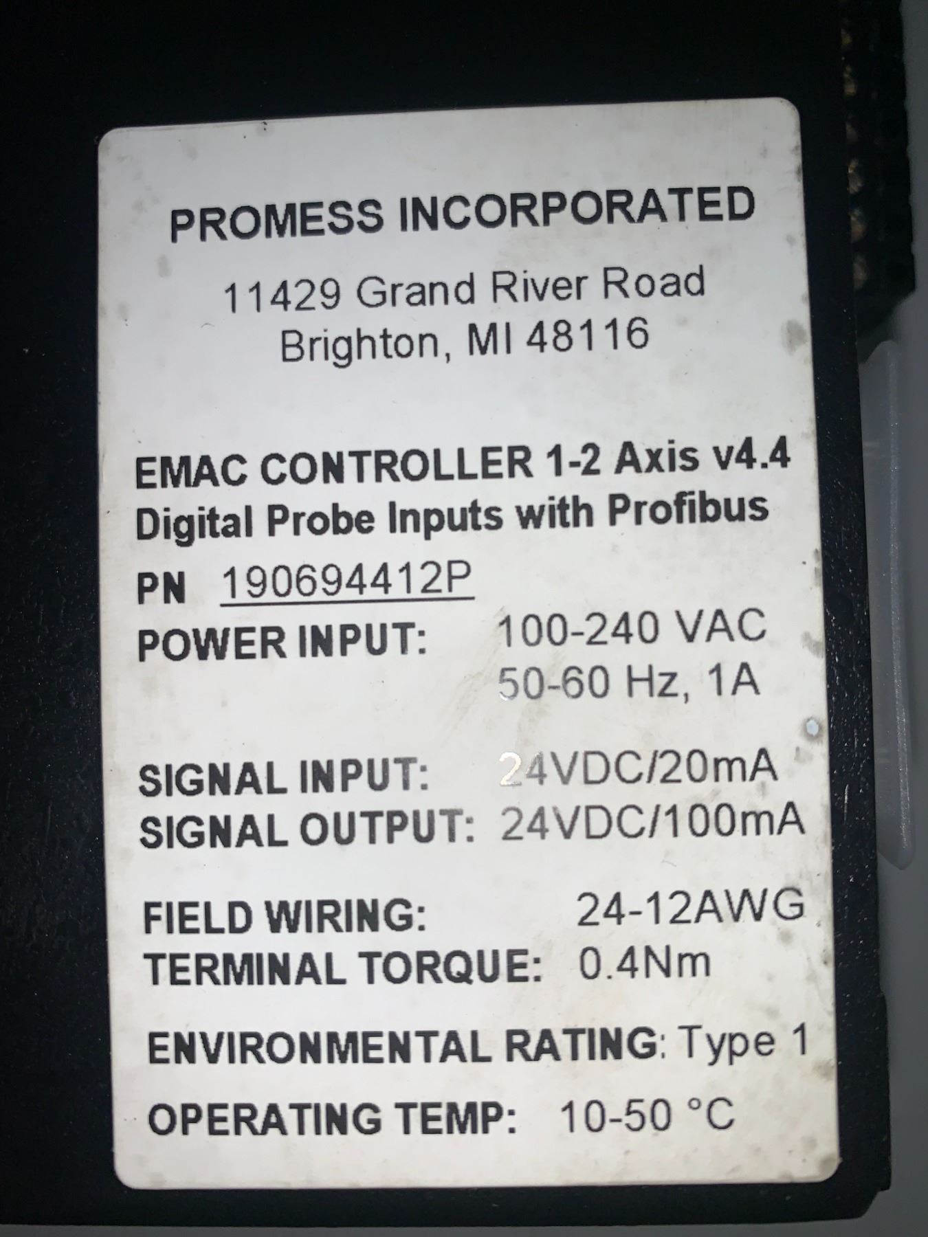 Promess 190694412P EMAC 1-2 Axis v4.4 Digital Probe Inputs with Profibus