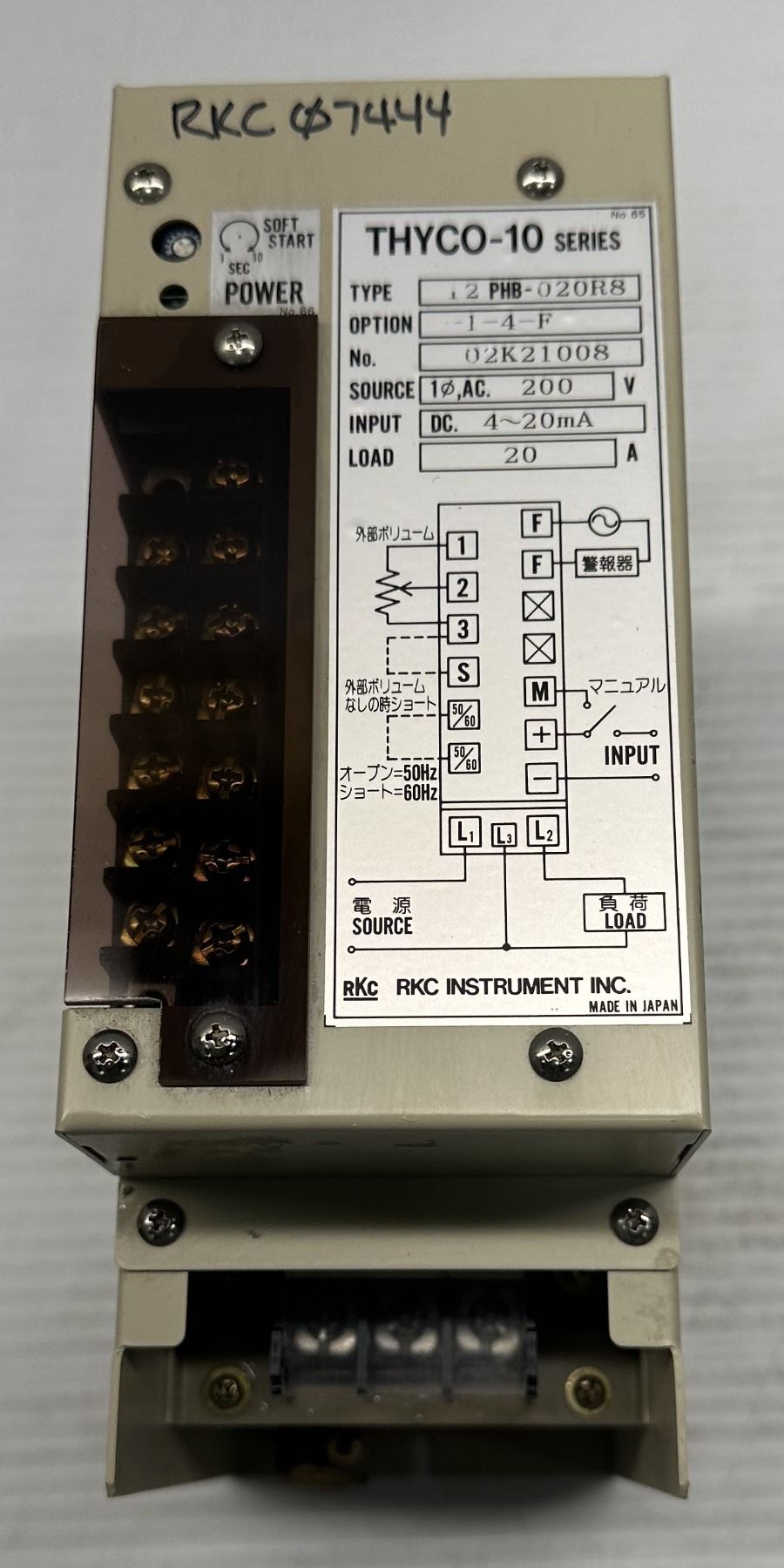 RKC Instrument #02K21008 Type 12 PHB-020R8 THYCO-10 Controller