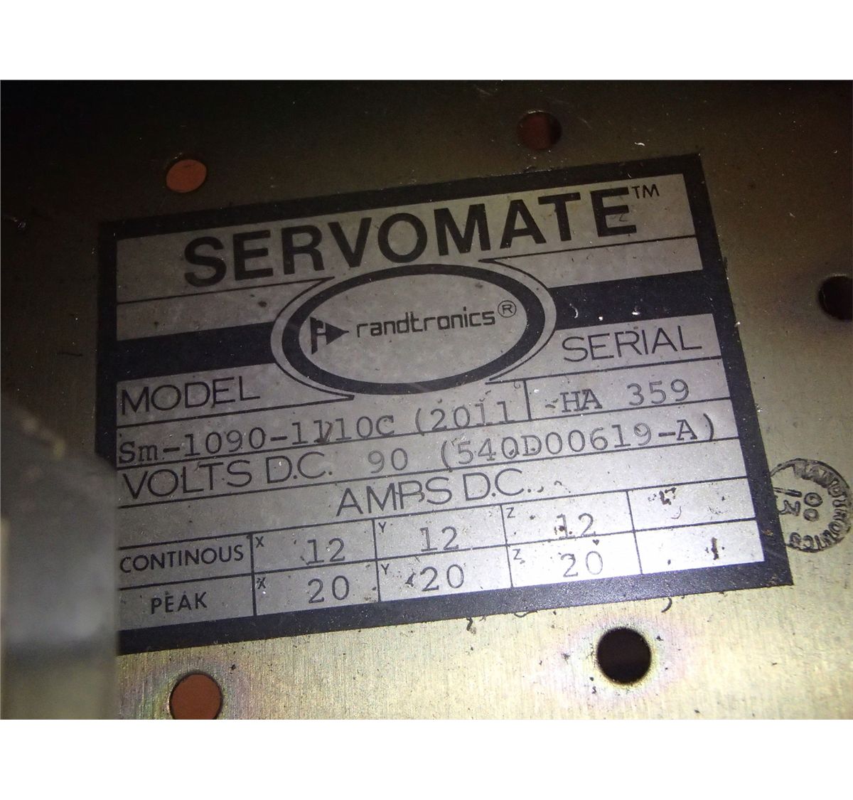 Randtronics Servomate: SM-1090-110C (2011) Board Number: (3) 800D05396, (1) 800D053834