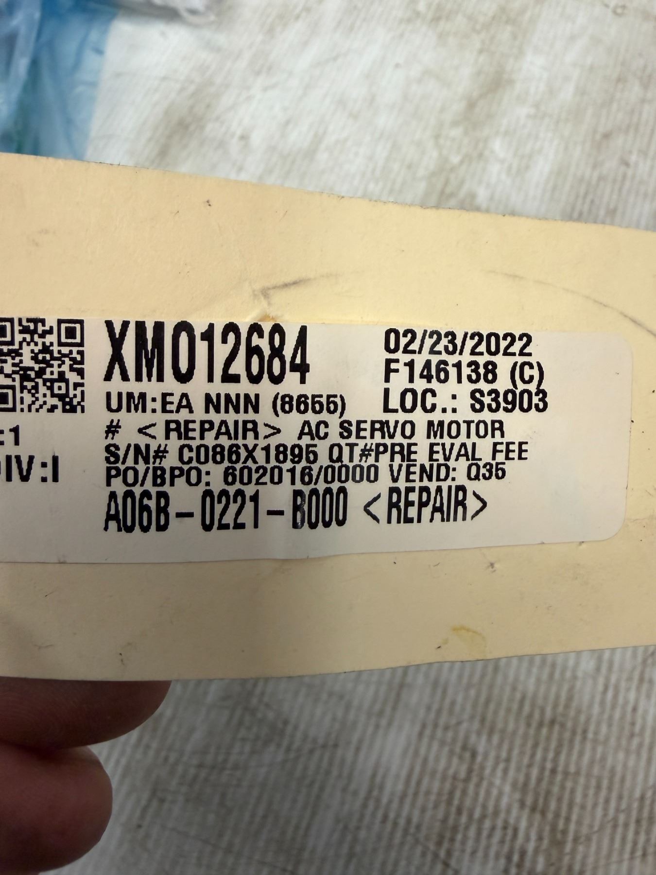 This item was removed from the inventory crib of a large corporation.