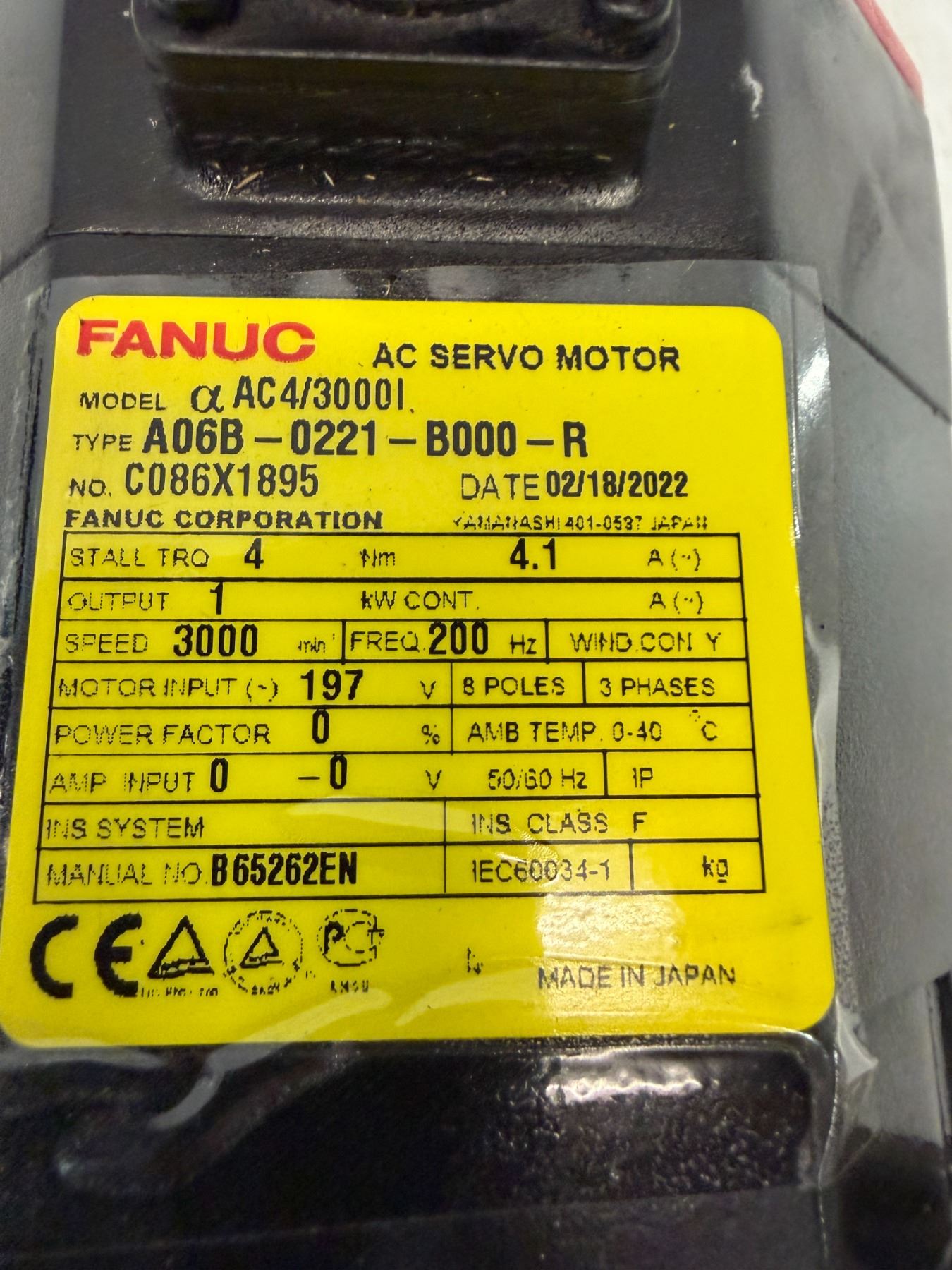 Repaired - Fanuc #A06B-0221-B000-R AC Servo Motor w/ Encoder: A860-2000-T301