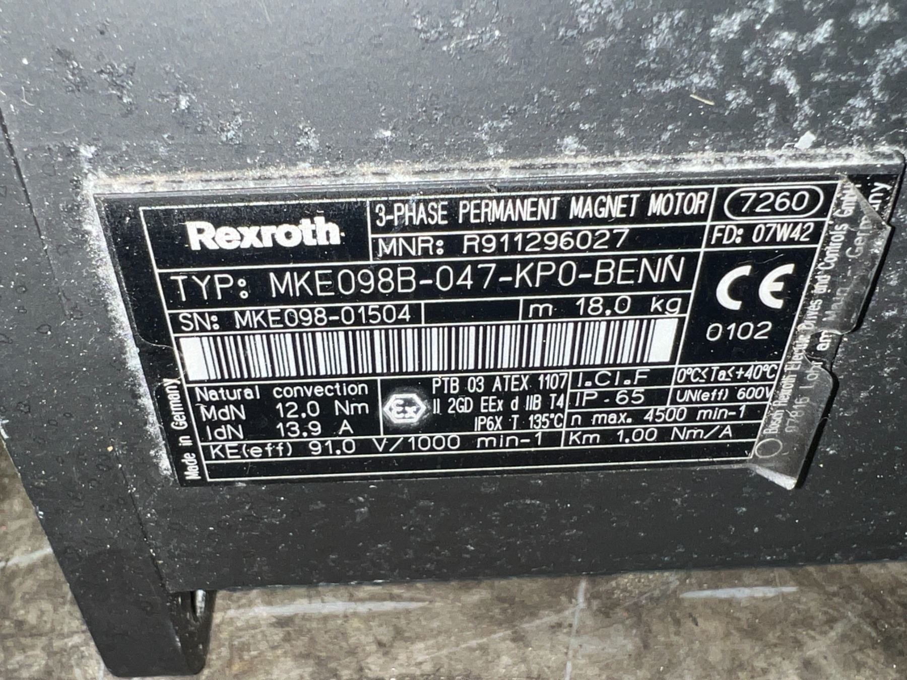 Rexroth #MKE098B-047-KP0-BENN / MNR# R911296027 Permanent Magnet Motor