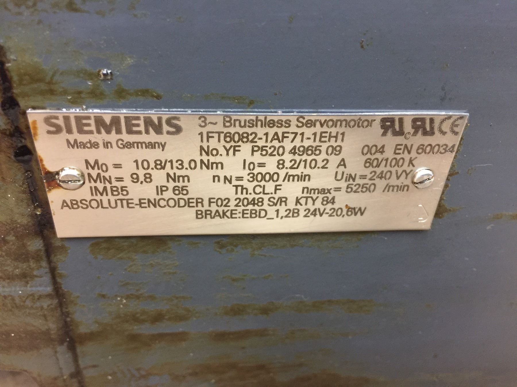 SIEMENS 1FT6082-1AF71-1EH1 BRUSHLESS SERVOMOTOR