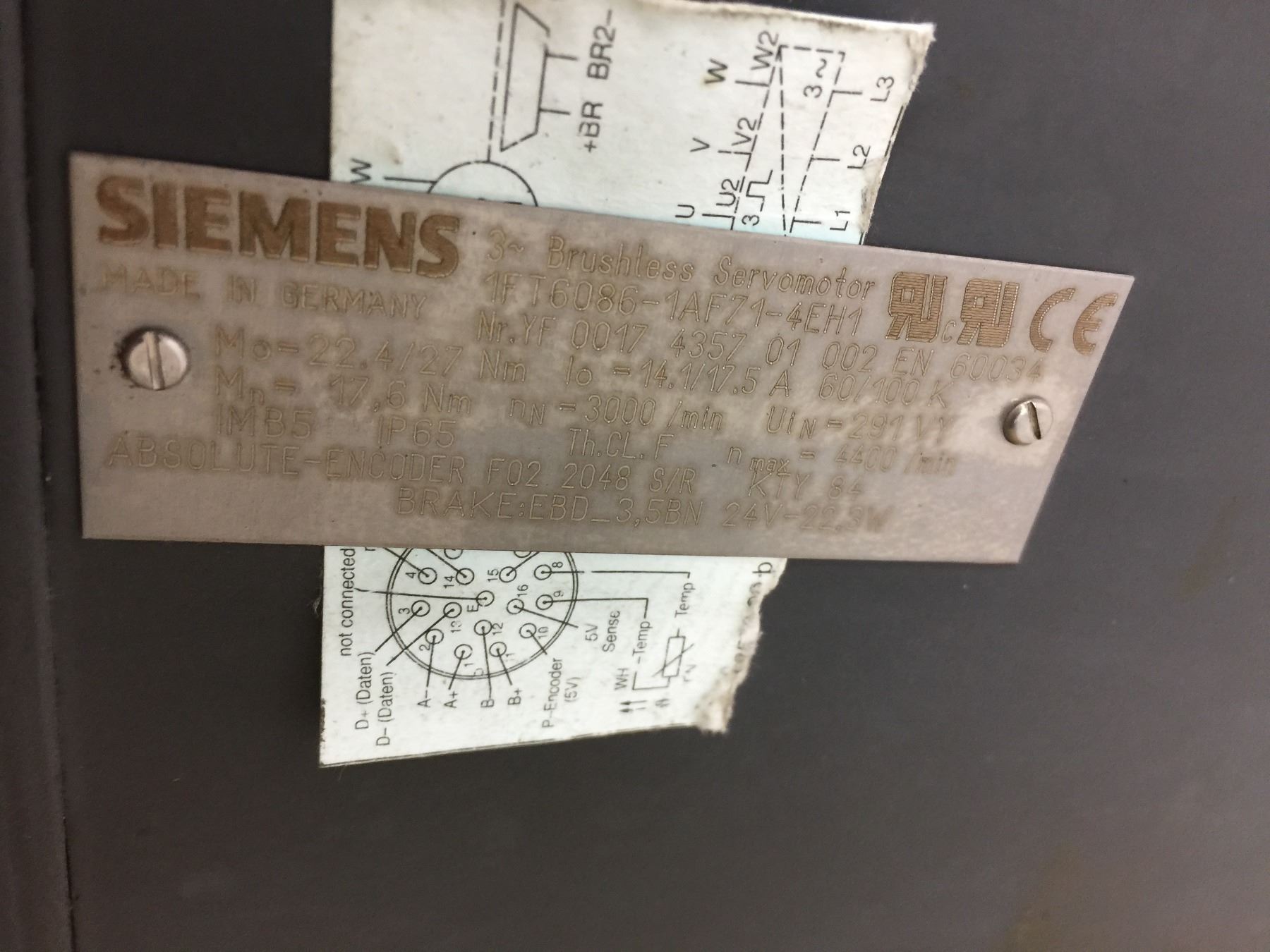 SIEMENS 1FT6086-1AF71-4EH1 BRUSHLESS SERVOMOTOR TAG IS VERY HARD TO READ SEE PHOTOS
