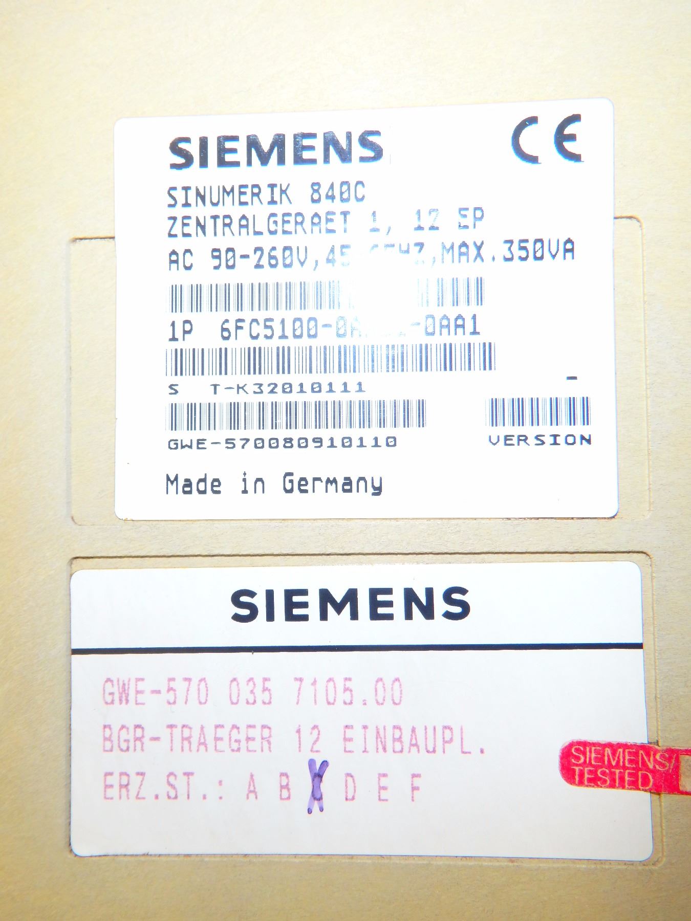 SIEMENS 1P 6FC5100-0AA01-0AA1 SINUMERIK 840C RACK