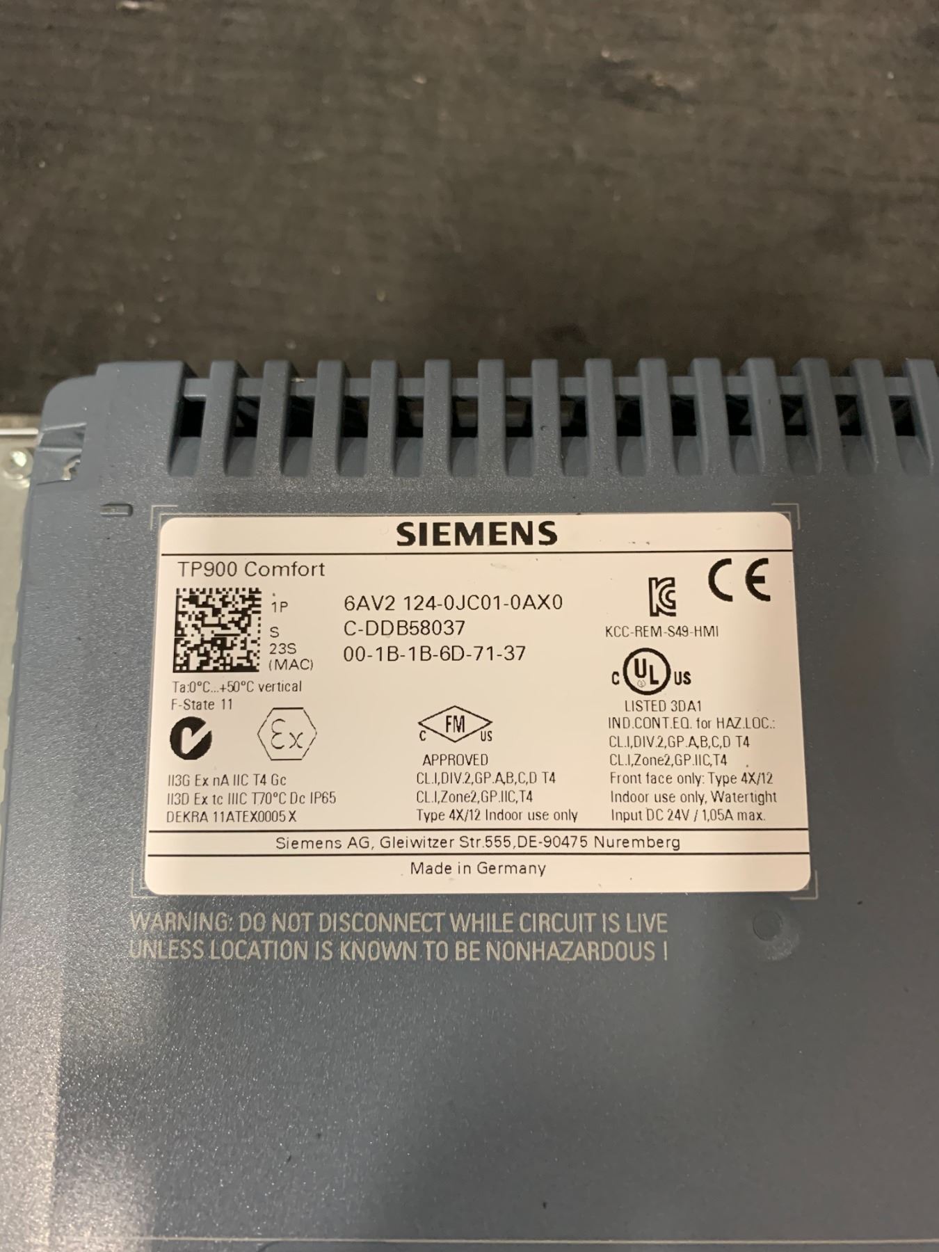 SIEMENS 6AV2 124-0JC01-0AX0 TP900 COMFORT TOUCH SCREEN