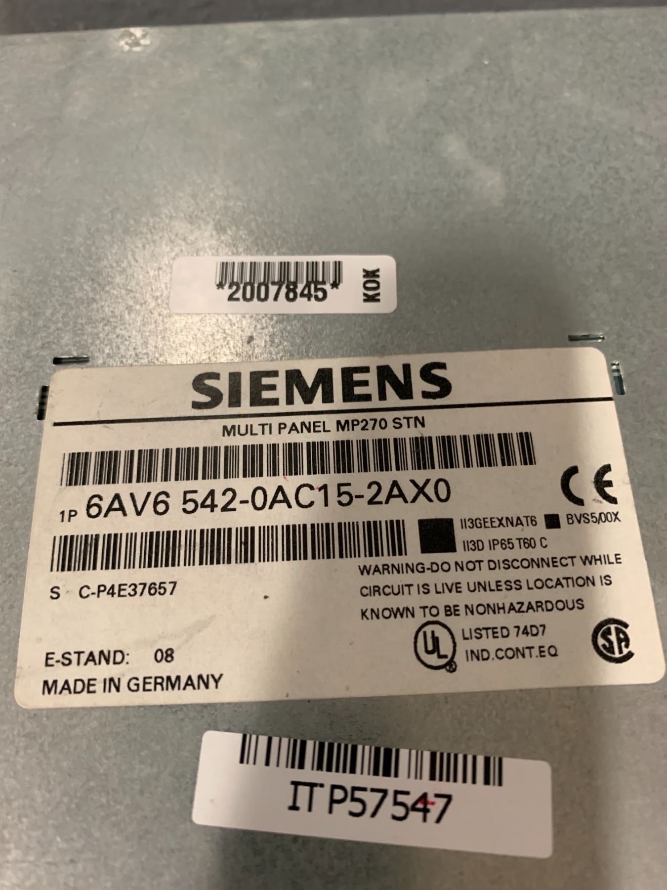 SIEMENS 6AV6 542-0AC15-2AX0 MULTI PANEL MP270 STN