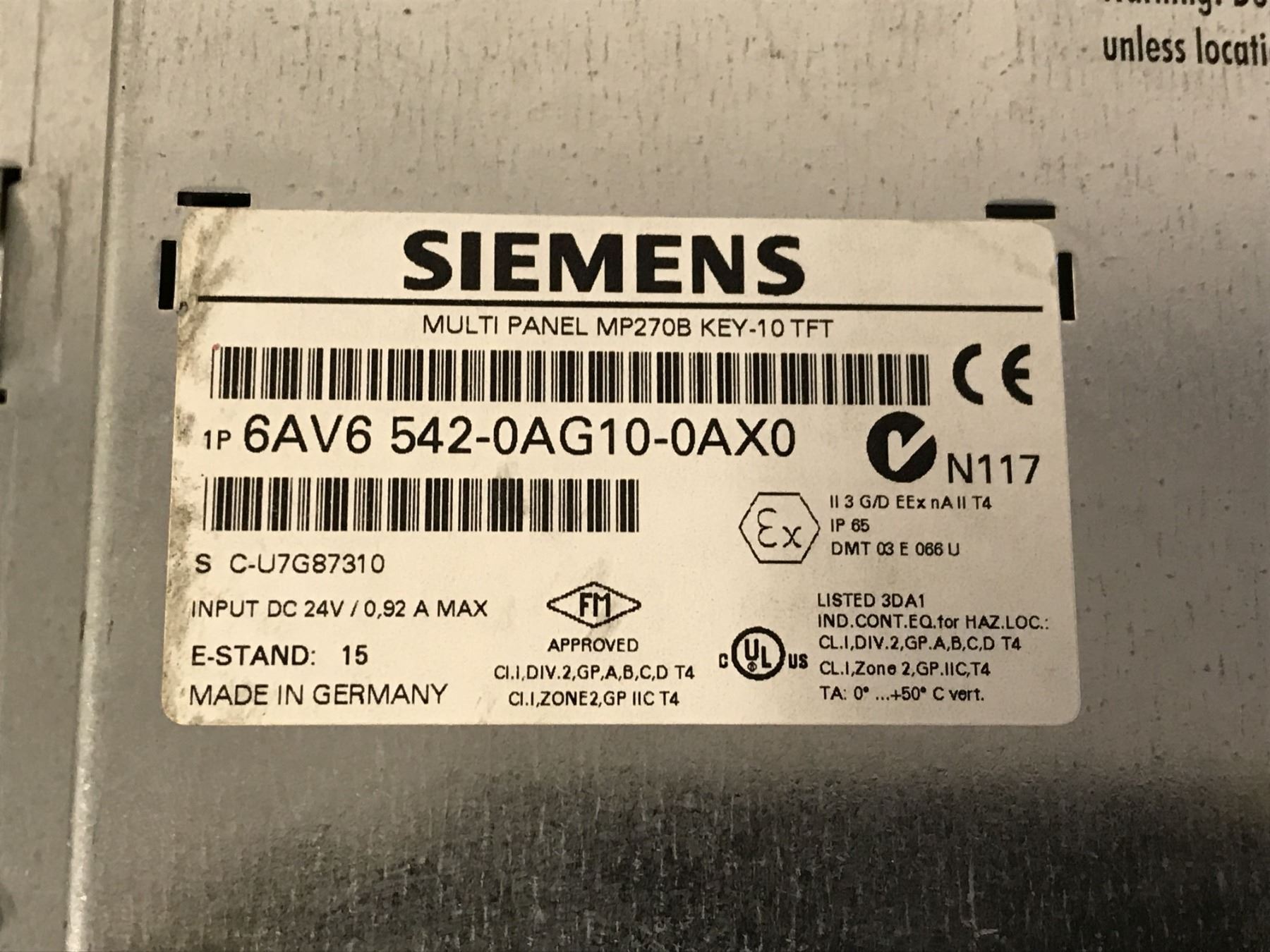 SIEMENS 6AV6 542-0AG10-0AX0 MULTI PANEL