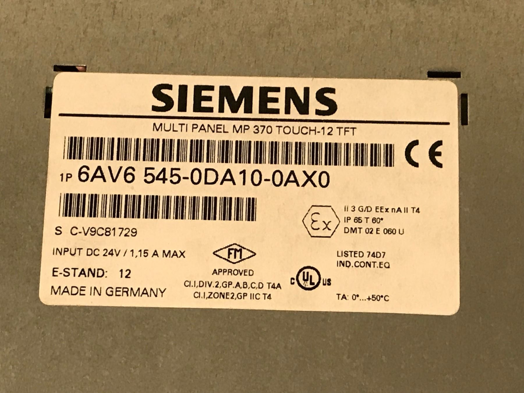 SIEMENS 6AV6 545-0DA10-0AX0 MULTI PANEL