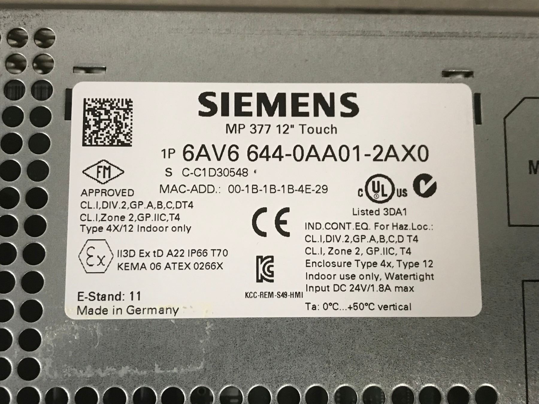 SIEMENS 6AV6 644-0AA01-2AX0 MULTI PANEL