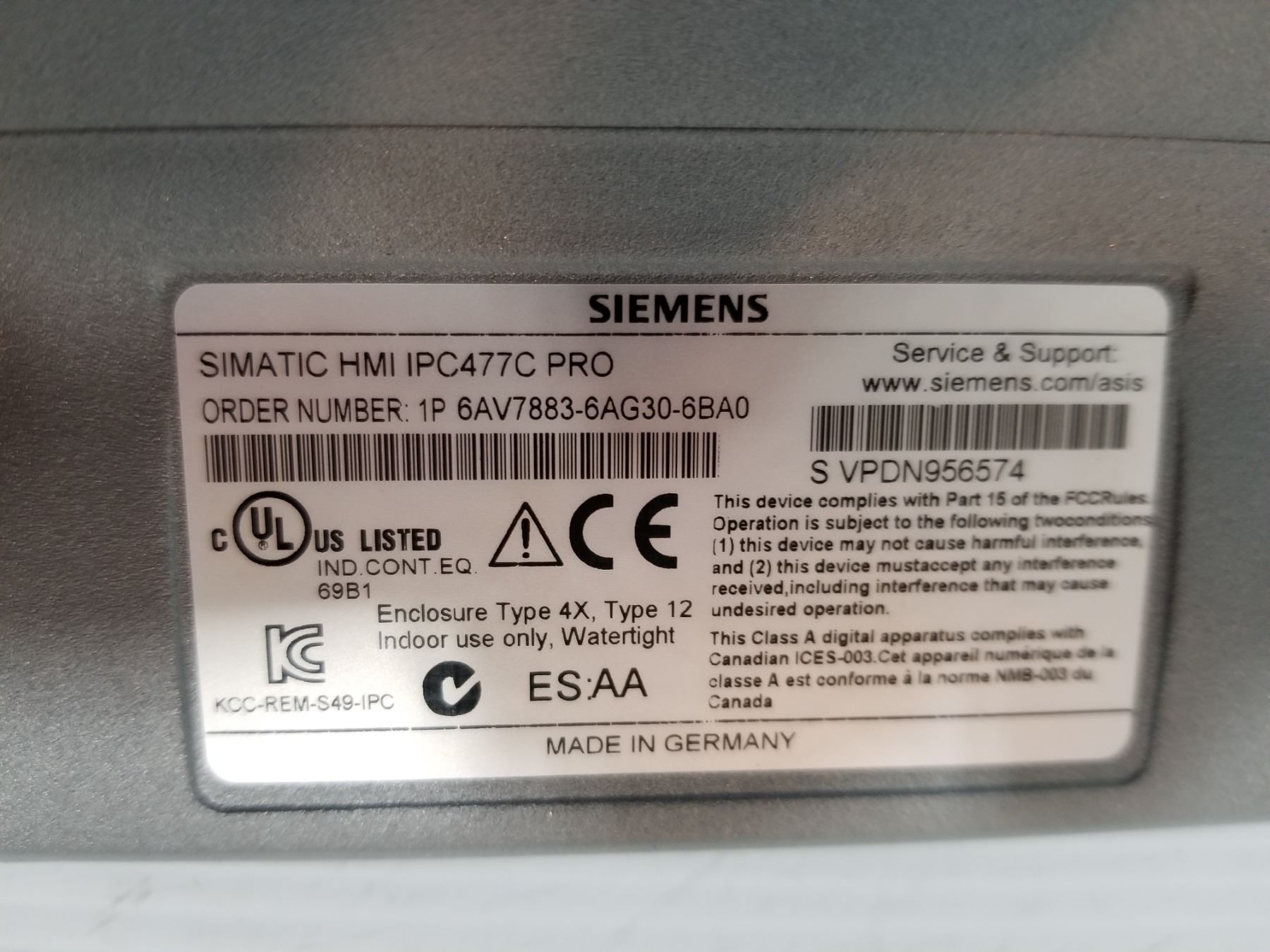 SIEMENS 6AV7883-6AG30-6BA0 SIMATIC HMI