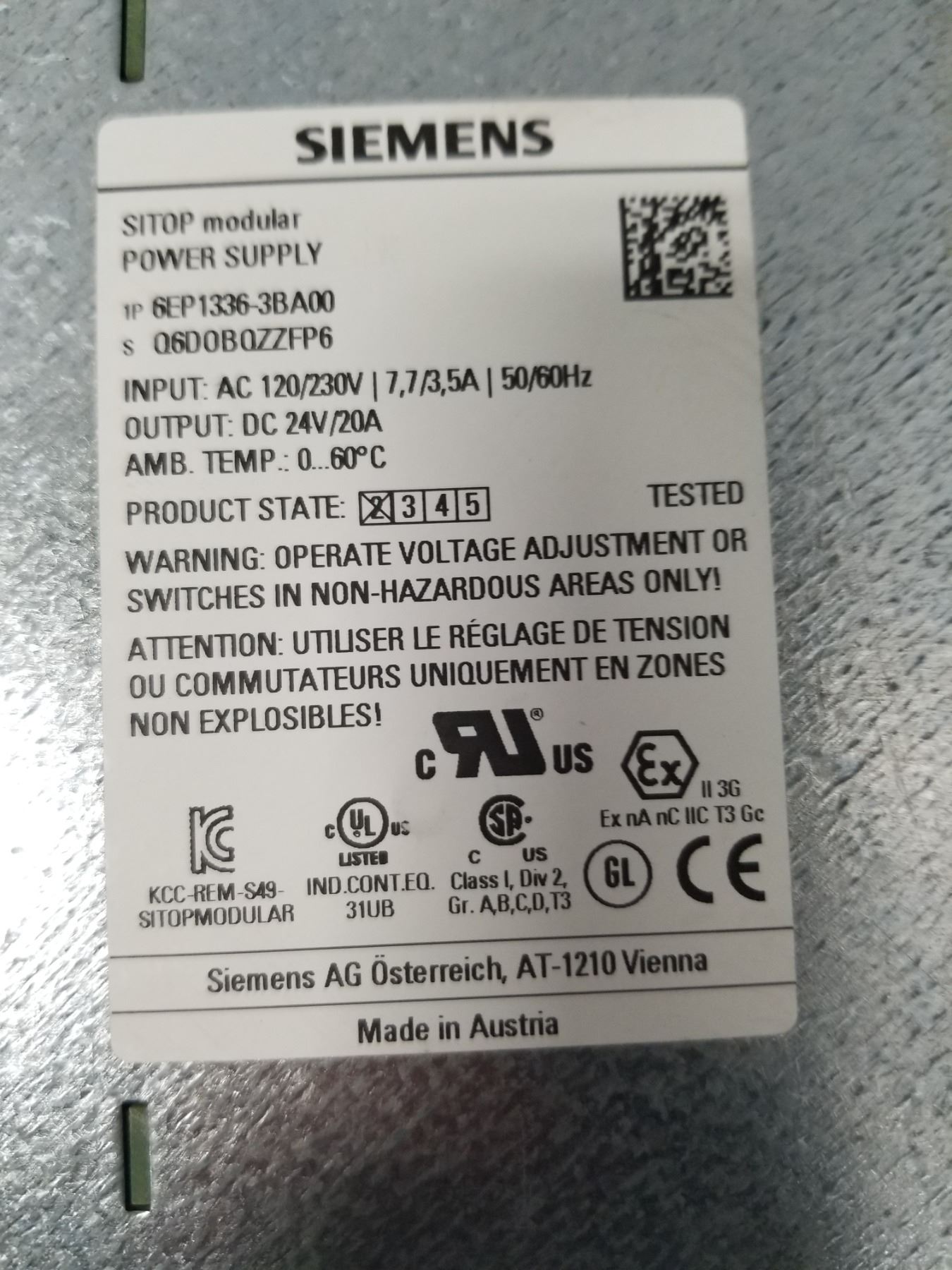 SIEMENS 6EP1336+-3BA00 POWER SUPPLY